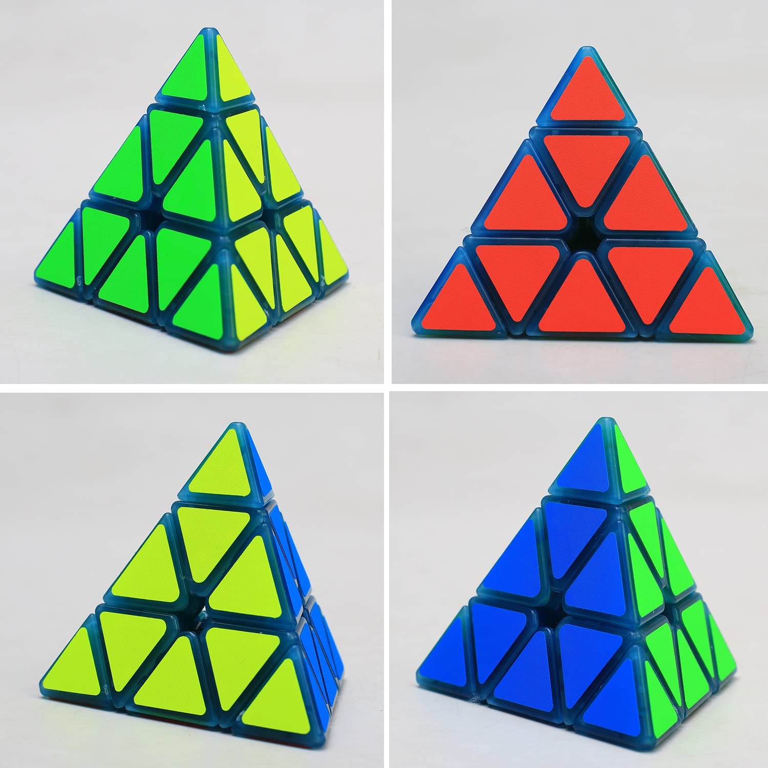 Pyramid Cube Speed Cube Glow In Dark Magic Speed Cube 3-D Brain Teasers Iq Puzzles For Kids And Adults (Blue Fluorescent)