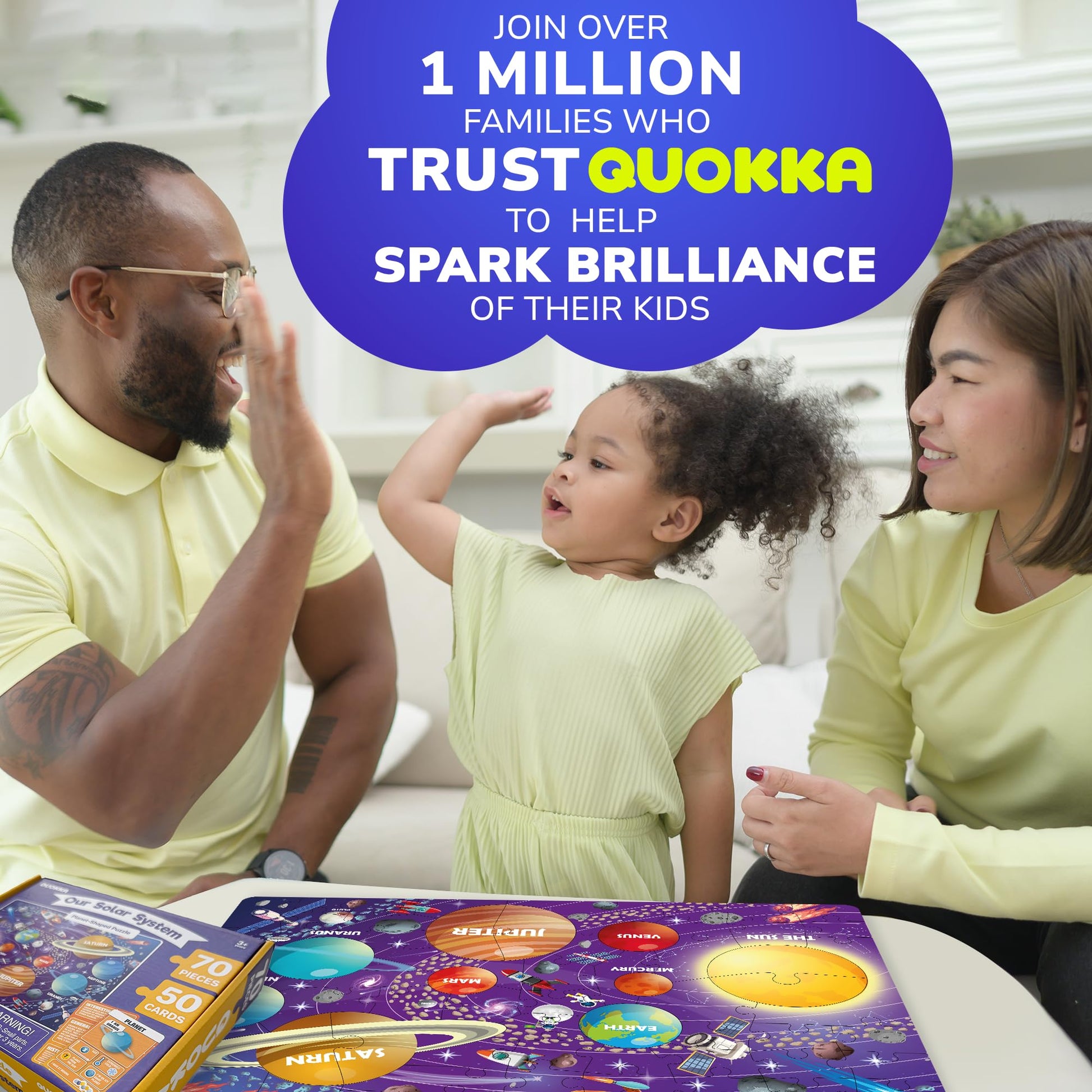- Q: What educational benefits do the QUOKKA Puzzles provide? A: The QUOKKA Puzzles come with 50 double-sided flashcards featuring over 400 facts about the universe, enhancing kids' learning experiences and helping to build their knowledge of space.