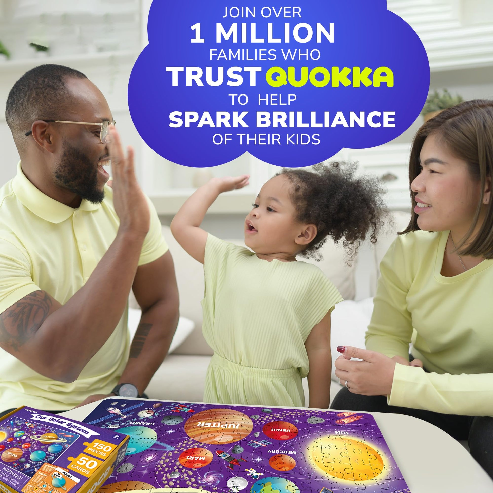 Quokka Puzzles For Kids Ages 8-10 - 150 Pcs Jigsaw Puzzles For 6-8 Year Olds - 400+ Facts On 50 Double-Sided Flashcards | Learn Space | Education Activity Gift - Shaped Puzzles For Toddlers 4-6