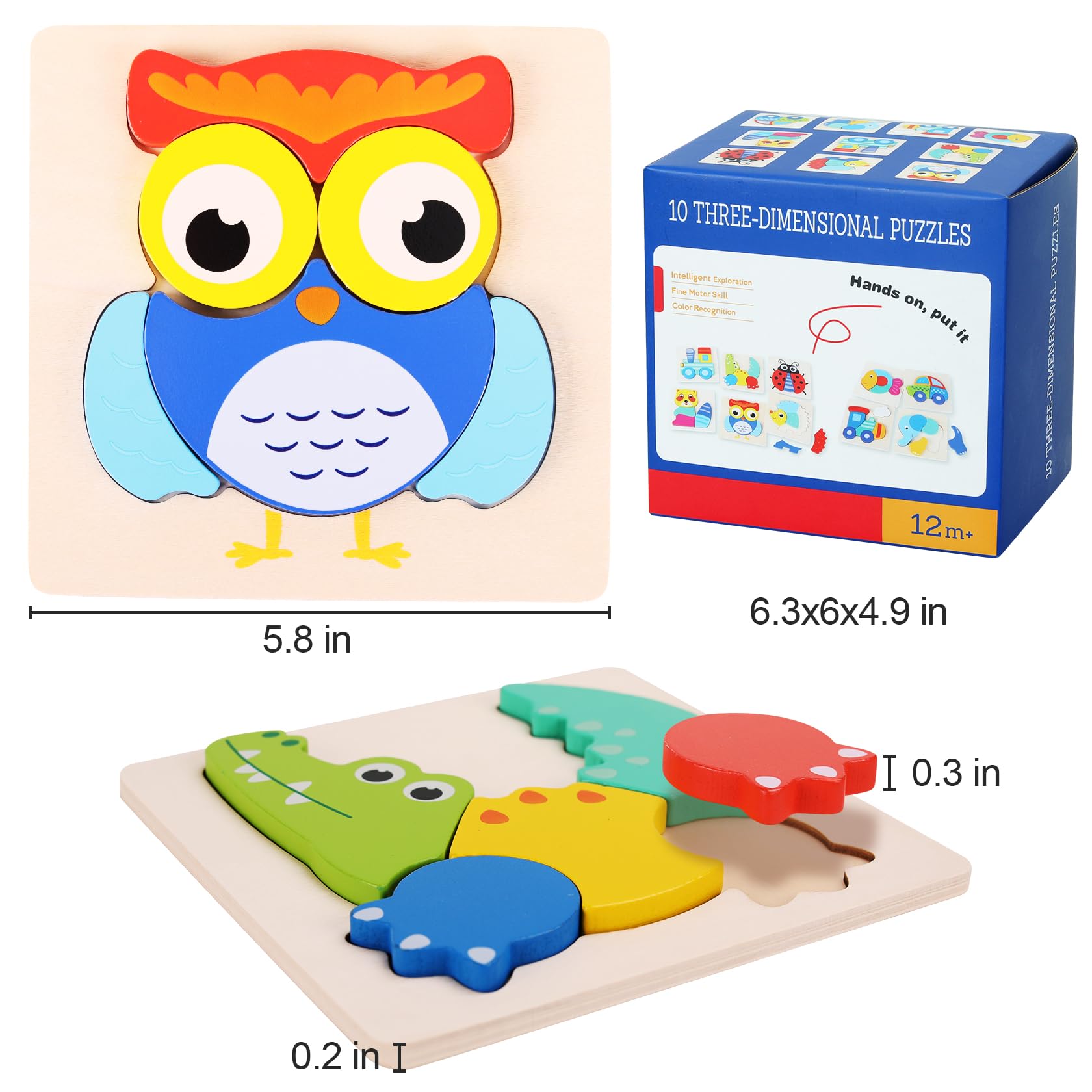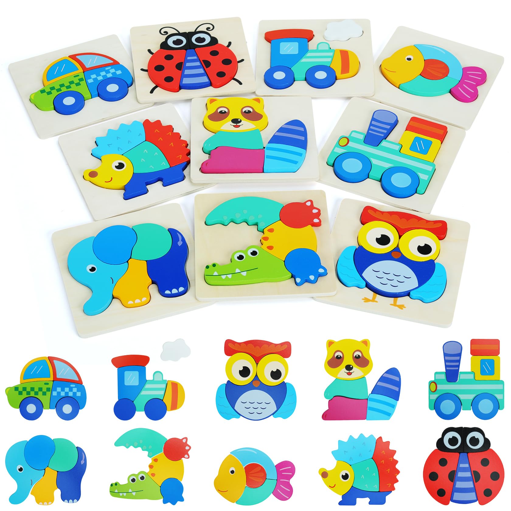 View compareQzmtoy Toddler Puzzles 10 Pack Wooden Puzzles For Toddlers,Montessori Puzzles For 1-3 2-4 Year Old,Infant Baby Learning Toys,Animal Vehicle Shape Jigsaw Puzzles Gift For Boys Girls-Large 3D Blocks…