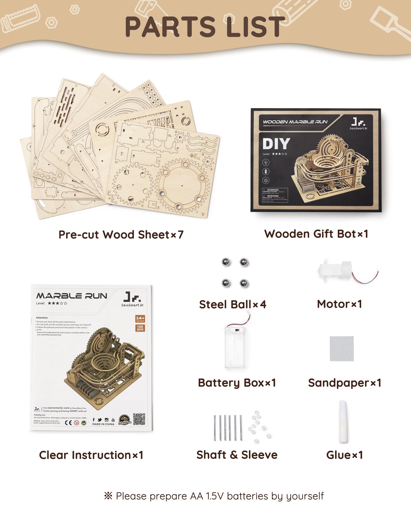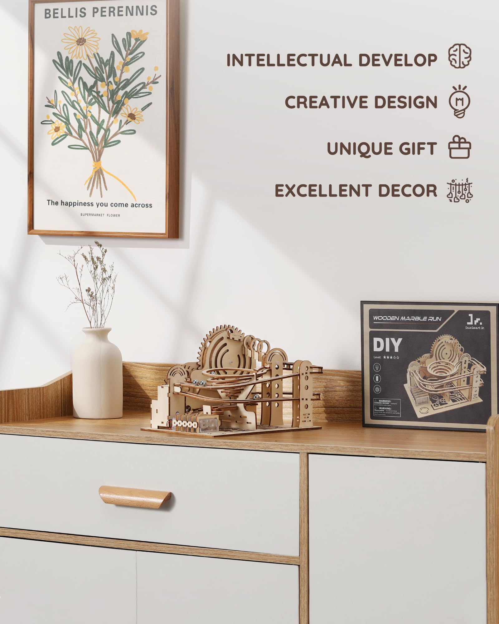 - Q: What makes this marble run unique compared to other puzzles? A: This 3D Wooden Marble Run features a motor-driven mechanism that propels marbles to the top and allows them to race through various channels, providing an engaging and creative design that captivates DIY enthusiasts.