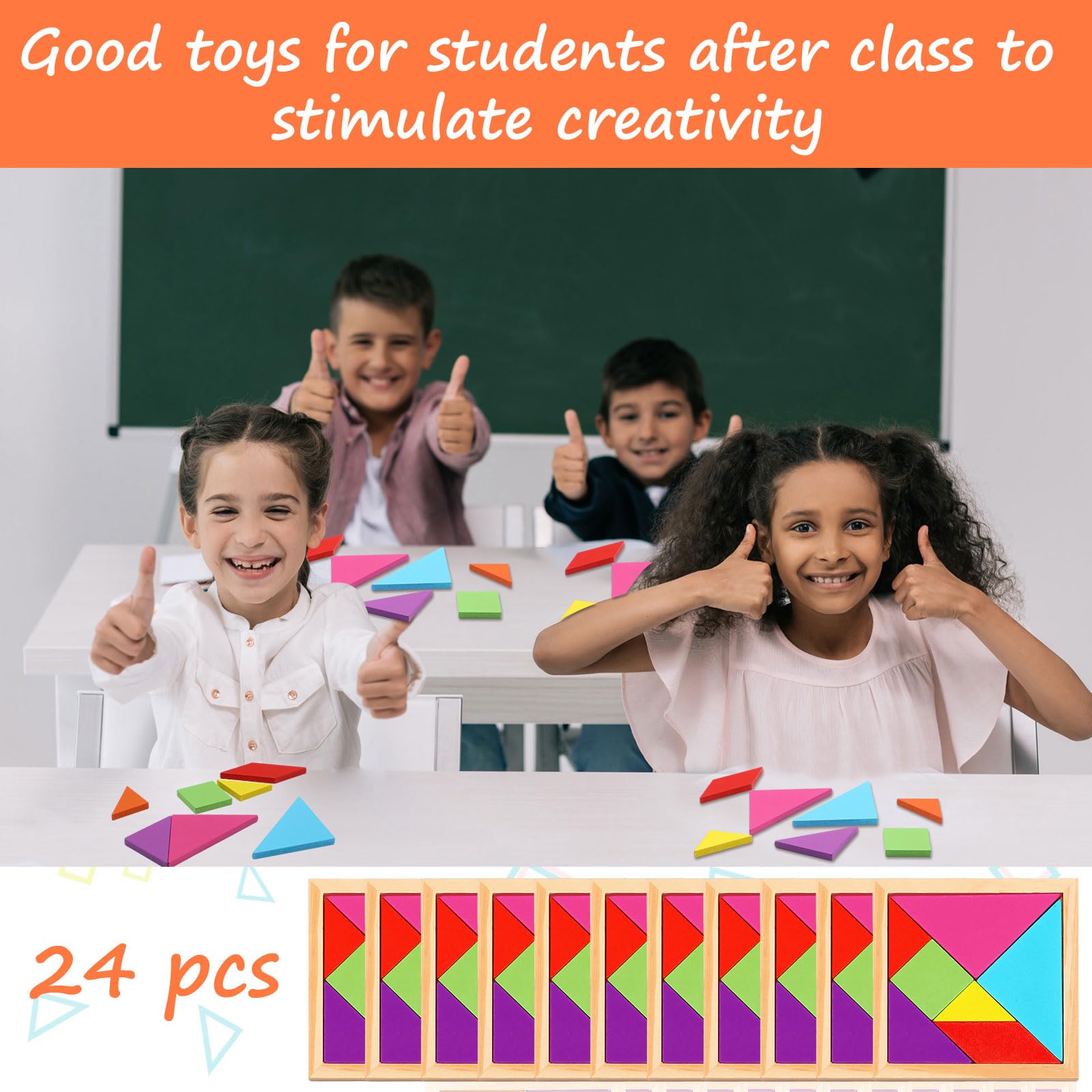 Syhood 24 Pieces Tangrams Puzzles For Students Party Favors Wooden Tangram Pattern Blocks Brain Logic Blocks For Manipulatives Games Educational Gifts And Party Favors(Classic)