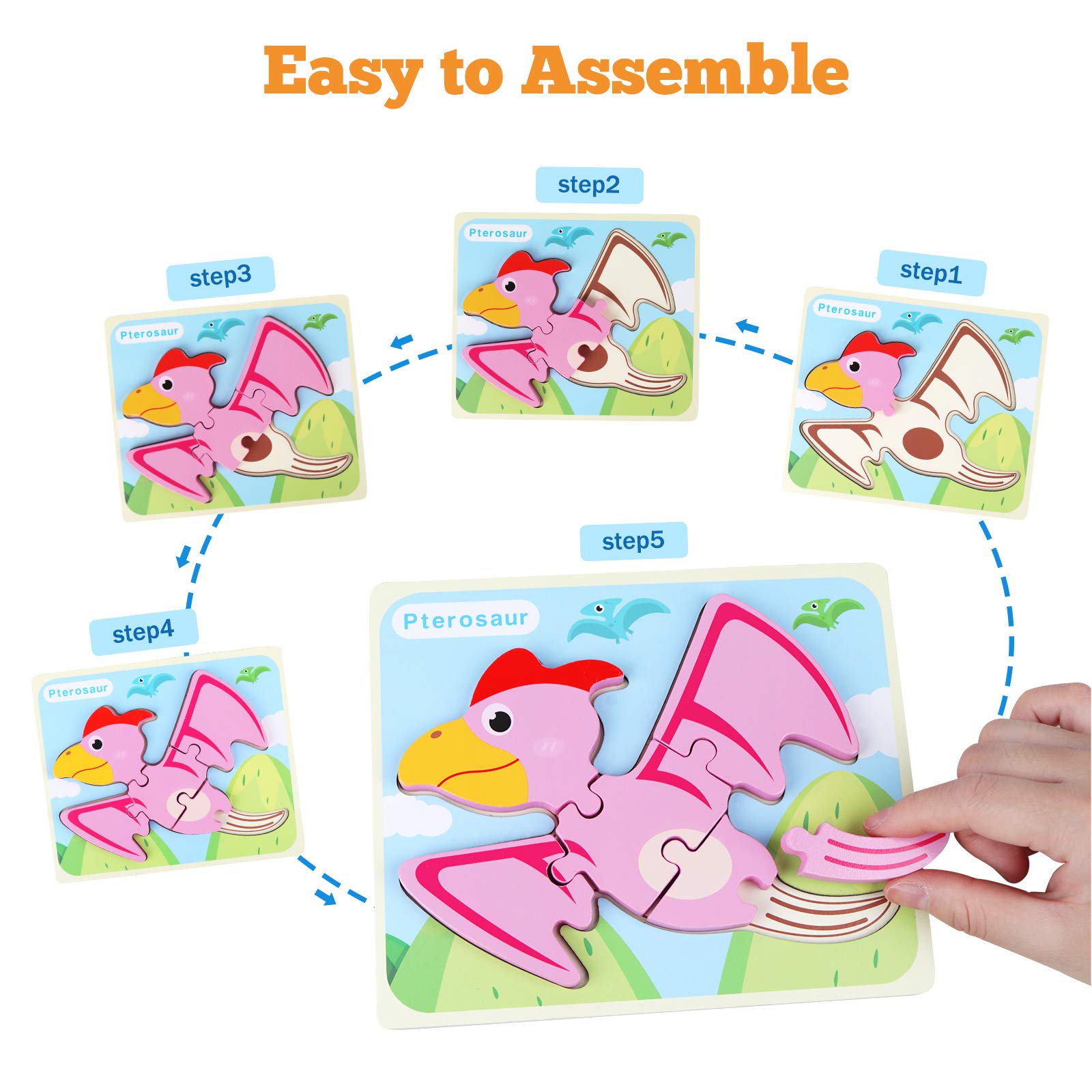 ?3D Dinosaur Puzzles For Toddlers?The Wooden Jigsaw Puzzles Come With 6 Cute Dinosaurs 3D Puzzles(Each Consist Of 5-7 Pcs), A Drawstring Storage Bag, And A Colored Gift Box. It'S A Wonderful Gift For Toddlers 2-5 Years Old. | ?High Quality And Eco-Friendly?Wooden Dinosaur Puzzles Are Made Of 100% Natural Wood And Eco-Friendly Water-Based Paint. All Accessories Are Certified By Cpc, Astm And Cpsia, No Odor And Non-Toxic. The Round Edges Of The Board And Large Jigsaw Pieces Prevent Any Unwanted Accidents, Children Can Play With Confidence. | ?Cognitive Development?There Are Clear Dinosaur Names And Outlines On The Board For Reference. It Is Easy For Kids To Assemble And Complete Learning Puzzles By Themselves. The Bright Color Puzzles Encourage Kid'S Color Discrimination, Which Can Stimulate Their Imagination And Develop Their Hand-Eye Coordination. | ?Parent-Child Play Time?It Is Easy To Carry And Can Be Used For Travel Games. There Are 6 Pieces Of Puzzles, Which Can Be Played By Multiple People At The Same Time, Which Is Very Suitable For Parent-Child Interaction And Create More Happy And Warm Memories At Home. | ?Great Gift?Fancy Packaging Bag, A Great Gift Choice For Kids Birthday, Christmas, Easter And Other Holidays. Buy This 3D Dinosaur Puzzle Set For Your Kids Or As A Cute Surprise For The Little Ones Of Family And Friends. 6 Piece Wooden 3D Dinosaur Puzzles For Boys And Girls Ages 2 3 4 5.