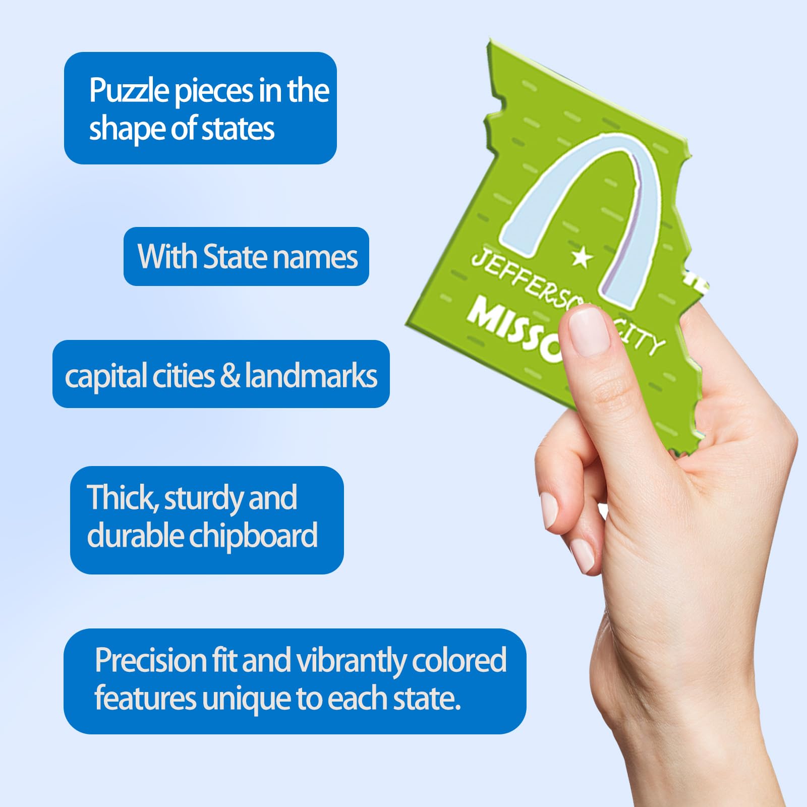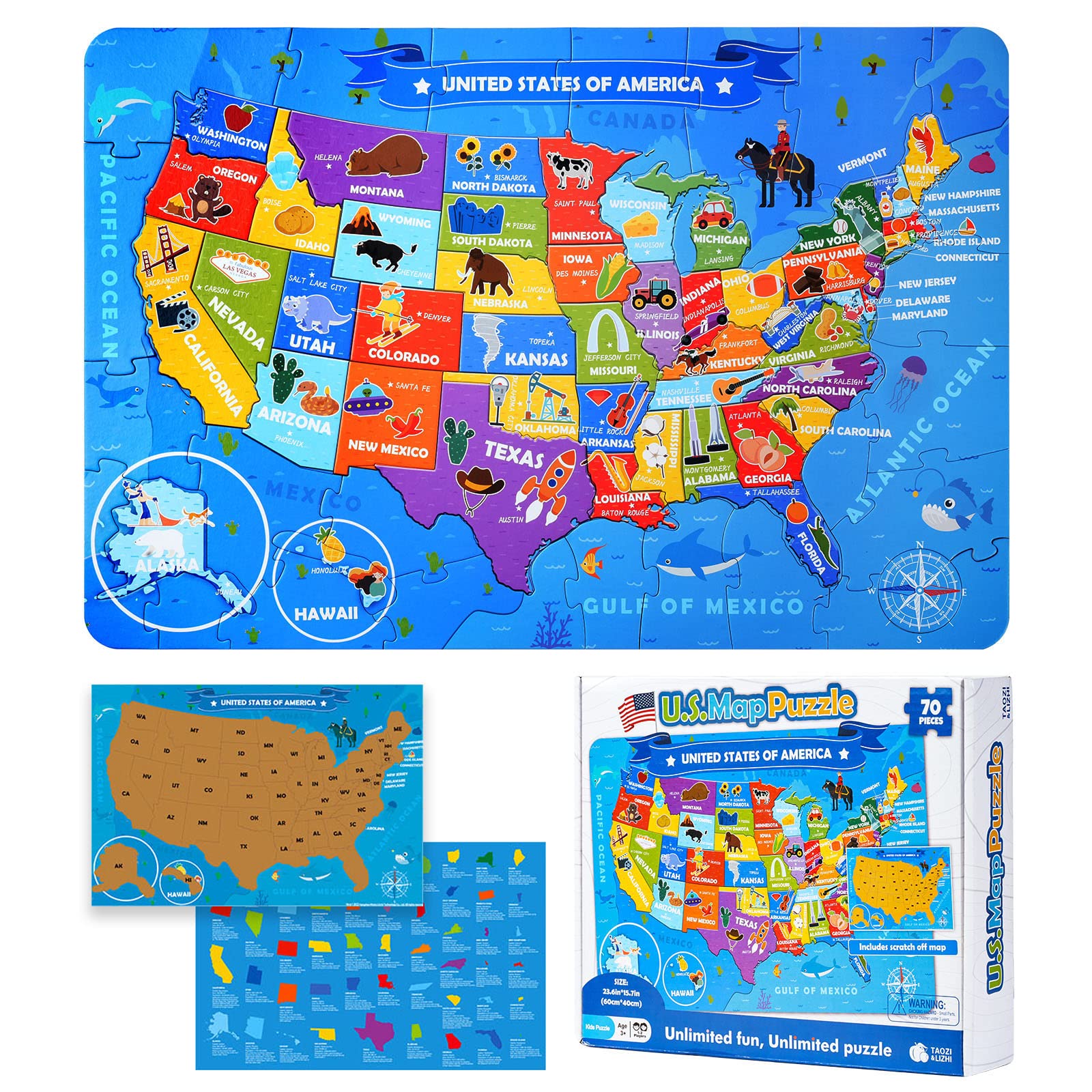 Taozi&Lizhi United States Kids Puzzles, 70 Piece Usa Map Puzzle 50 States With Capitals, Children Jigsaw Geography Puzzles Learn