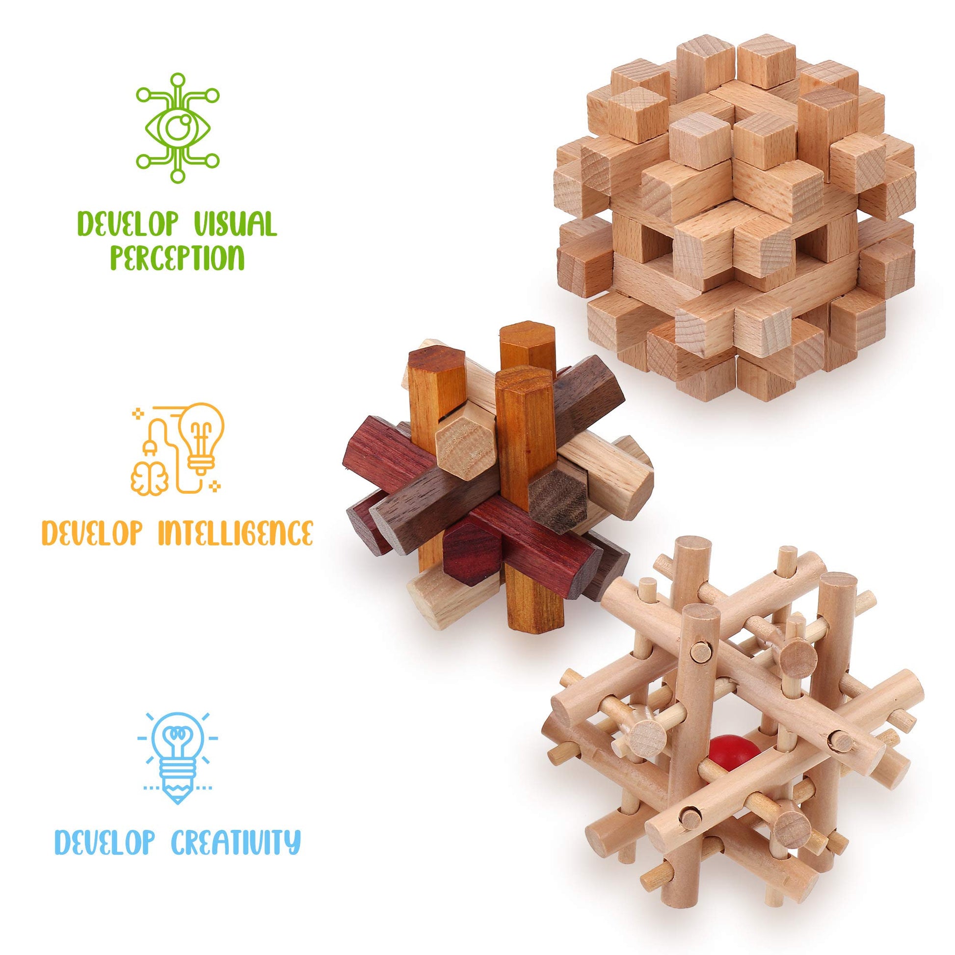 View compareWooden Brain Teaser Puzzles For Adults & Kids - 3D Puzzles Brain Games, Iq, Mind And Logic Test - Challenging Wood Educational Toys By Sharp Brain Zone