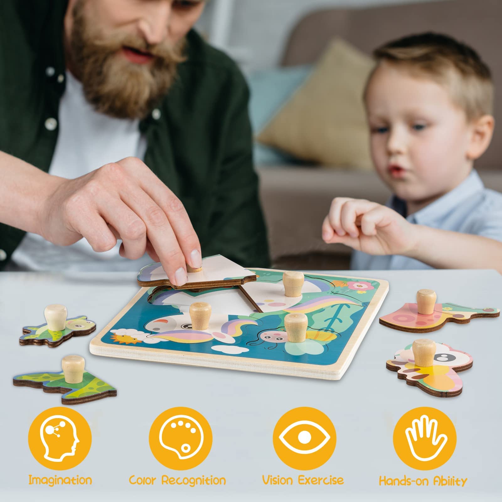 View compareWooden Toddler Puzzles, Funsland Peg Puzzles Gifts Toys, 4 Pcs Eco Friendly Animal Patterns Jigsaw with Handles, Infant Kid Fine
