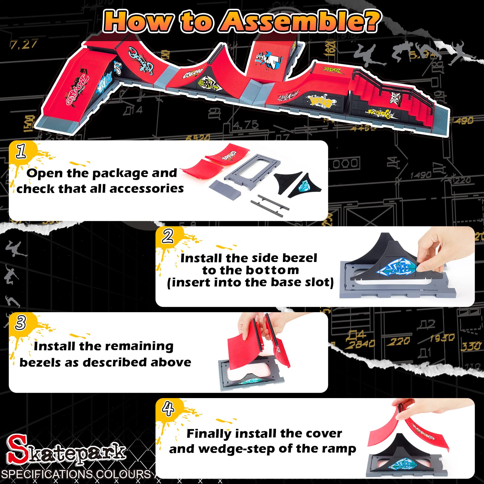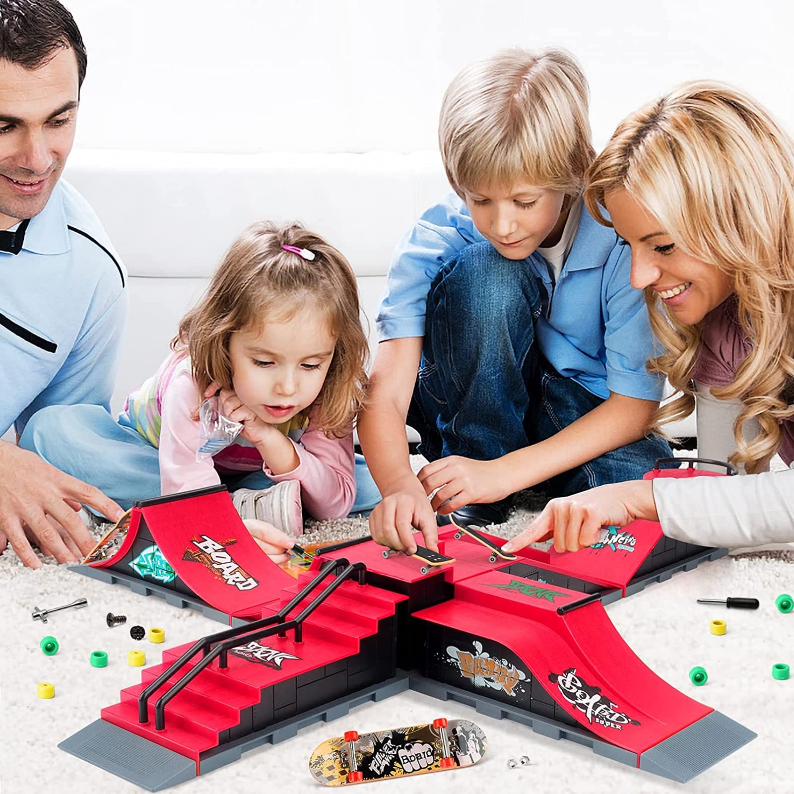 Mini Finger Skateboard Ramp Set, Skate Park Kit Ramp with Tools for Fingerboards Training Props Interactive Freestyle Skate Game, Finger Skateboards for Adults & Kids