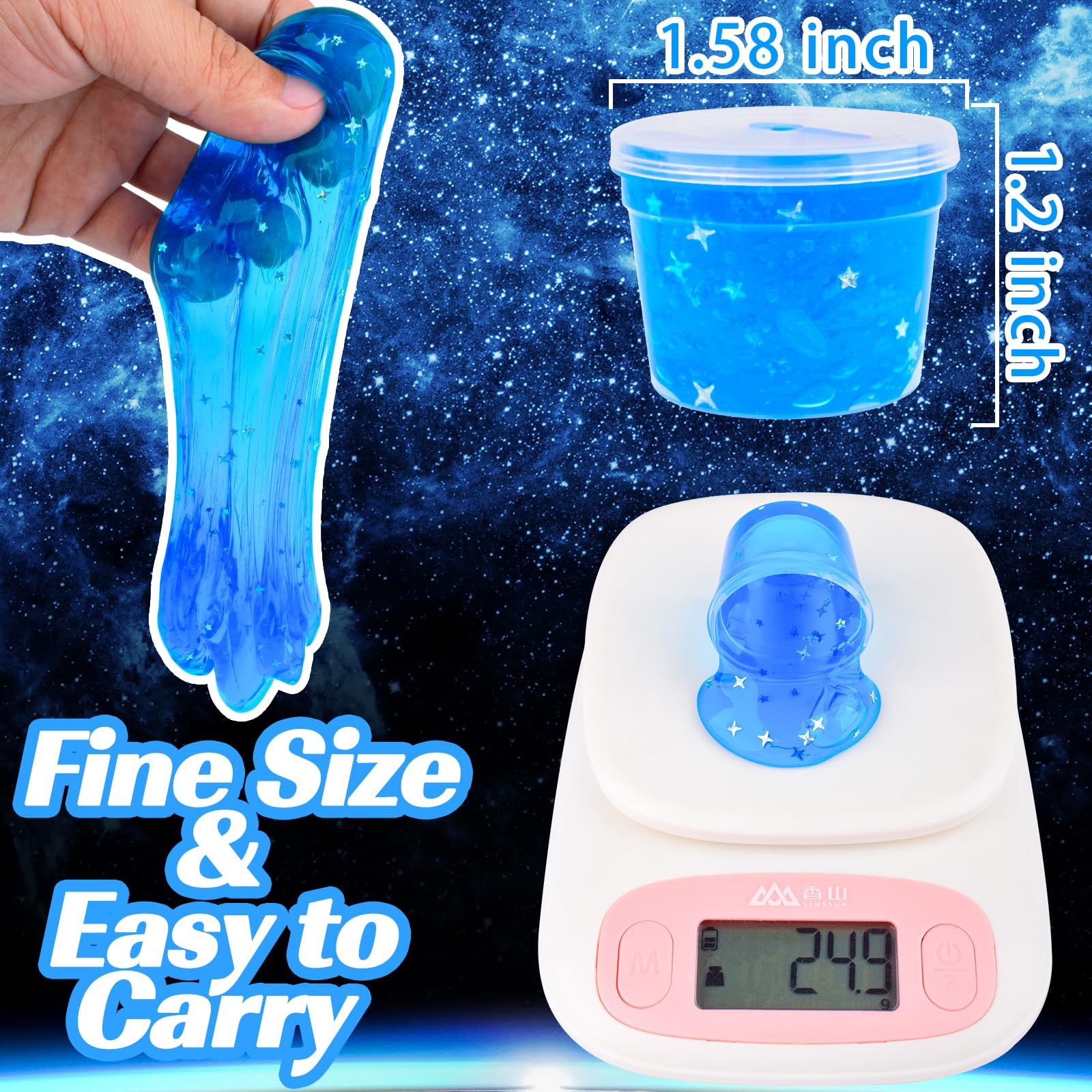 View compare24 Pack Blue Galaxy Slime, Slime Bulk Party Favor for Girls & Boys, Clear Container Jars Galaxy Star Slime Cup, Soft, Wet, Non S