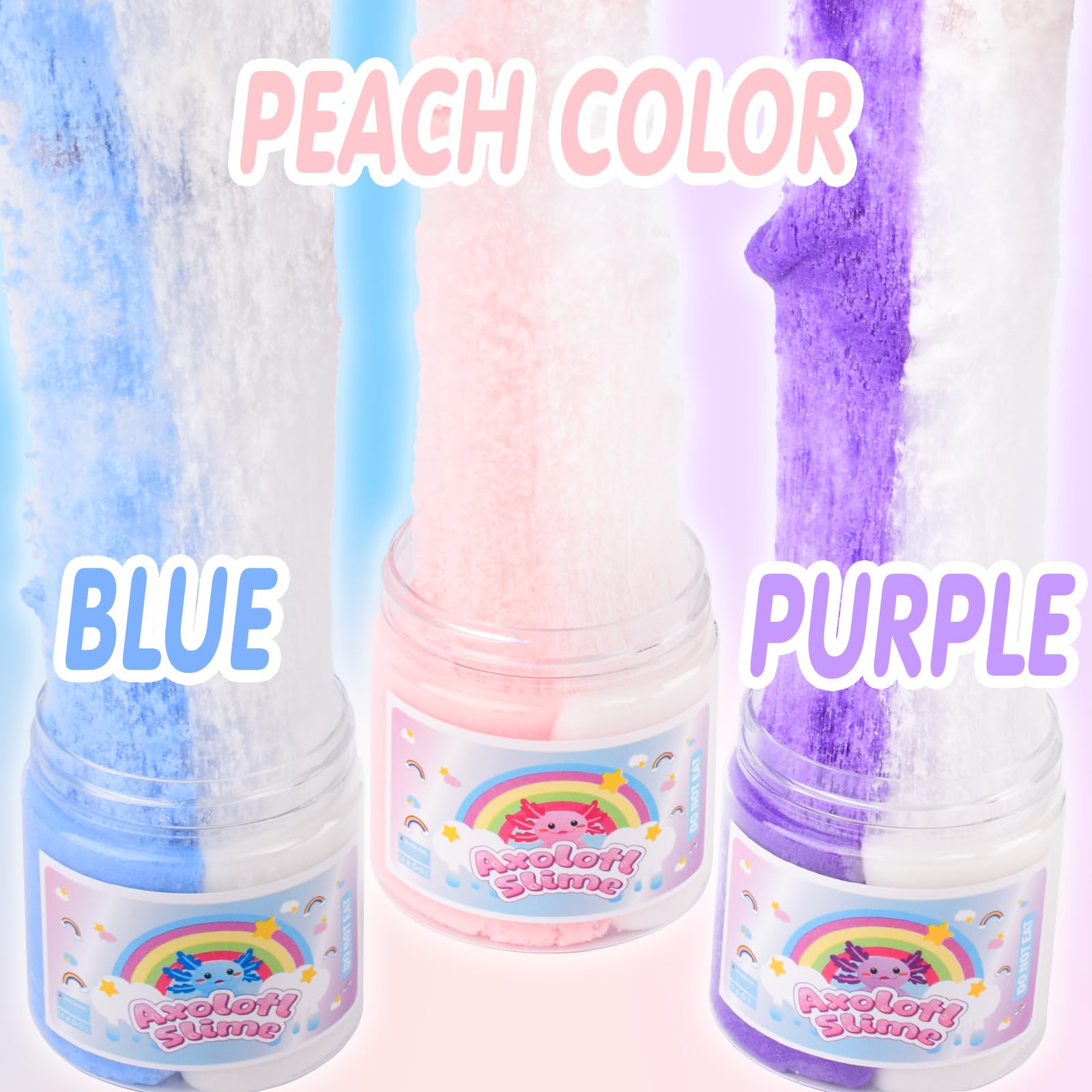 3 Pack Axolotl Cloud Slime, with Pink, Blue, Purple Axolotl Charms, Scented Slime Party Favor for Girls & Boys, Super Soft, Idea