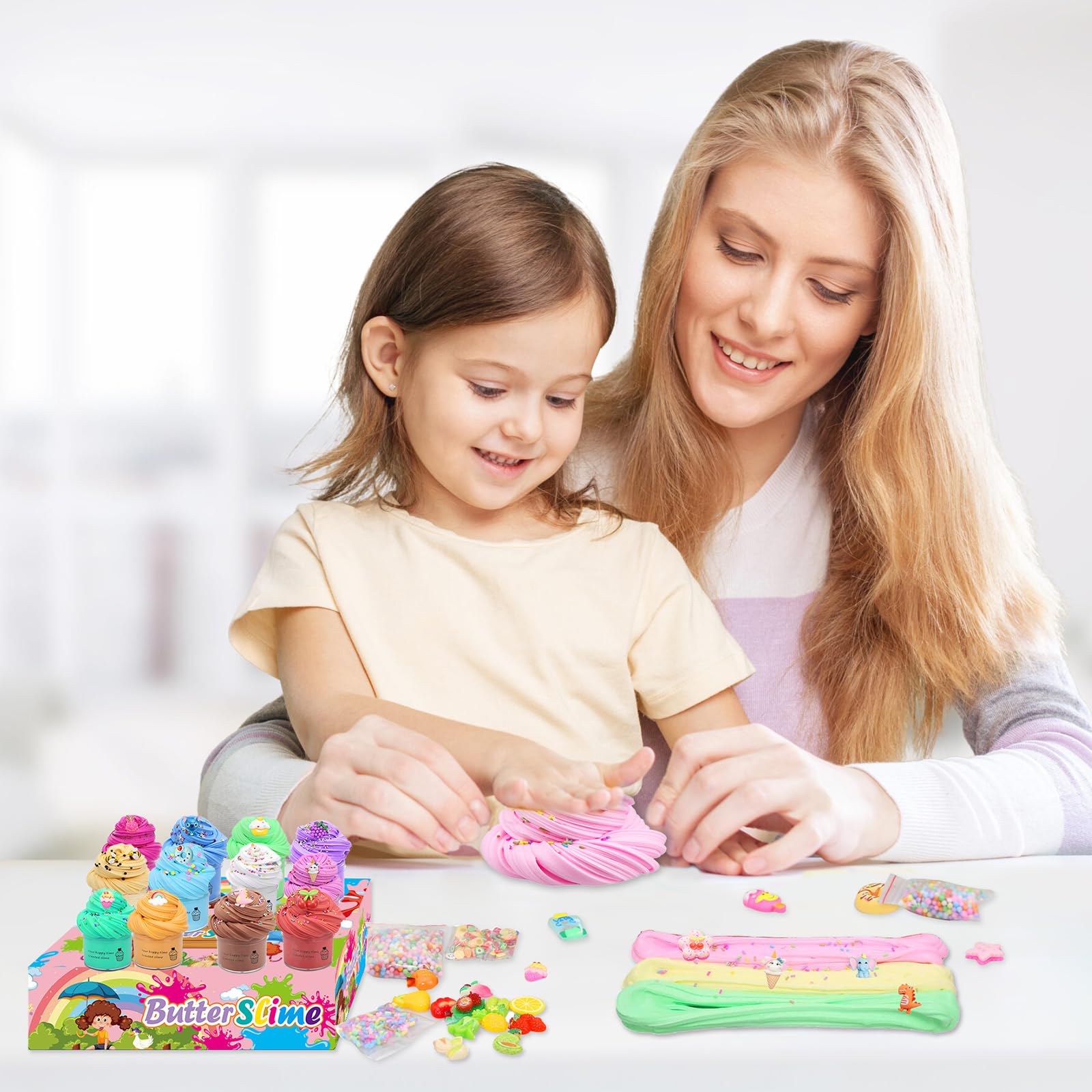 Butter Slime Kit for Girls Boys, Mini Slime Kit Toy with 54 Pack Cute Butter Slimes, Soft Stress Relief Slime Toys for Kids Ideal Birthday Gift Educational Fluffy Easter Filling Stuffies Slime Toys.