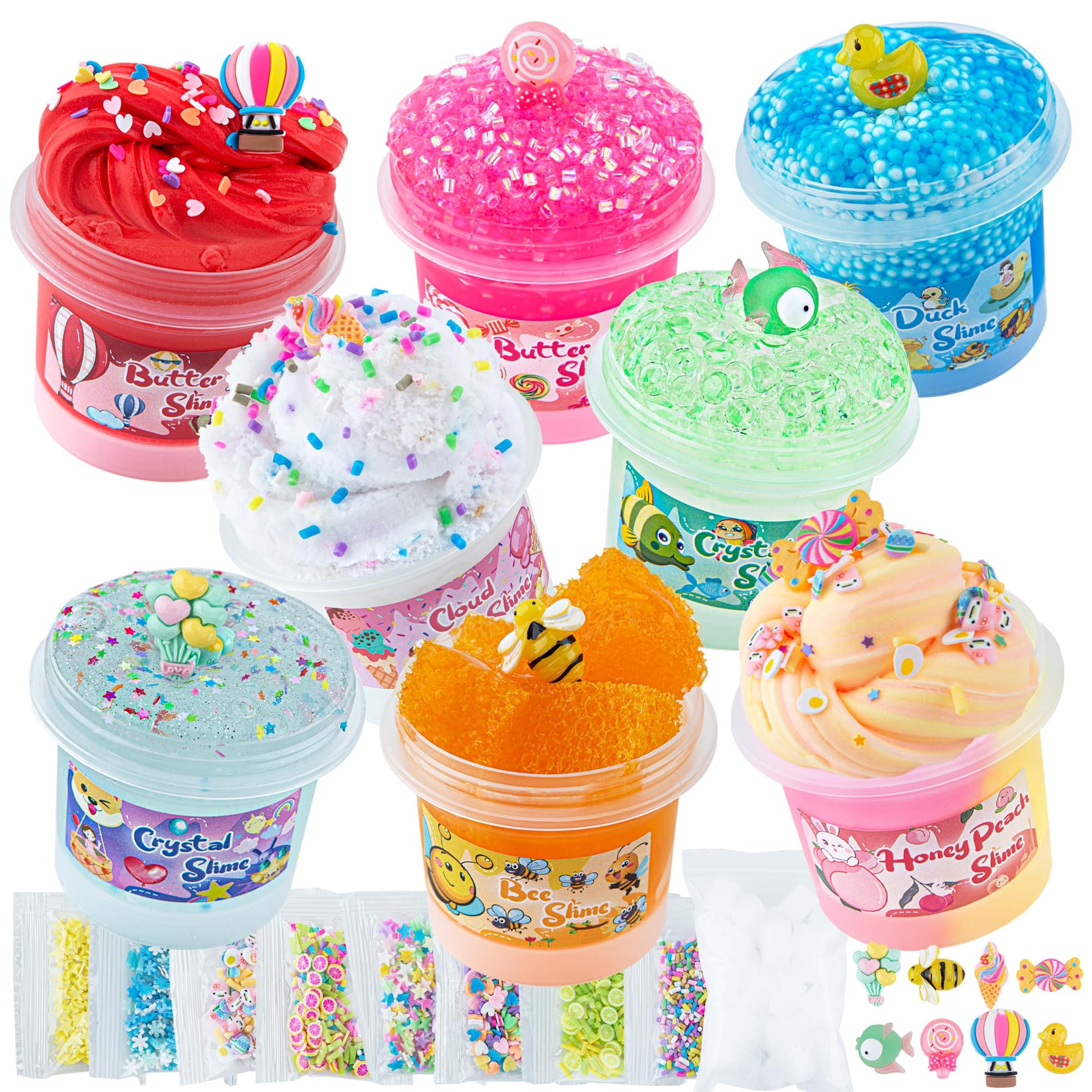 - 8 Different Texture Slime Kit: This slime kit features a variety of textures, allowing you to experience non-sticky butter slime, super drizzly cloud slime, and stretchy clear slime all at once!