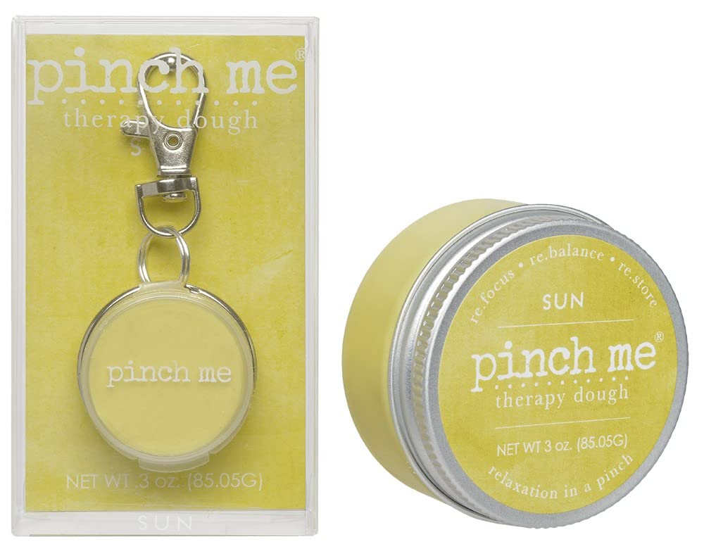 SENSUAL SUN: A return to the restful days of summer. This tranquil fusion offers a subtle, fruity accord of lemon zest. Add a little brightness to your day with a simple twist of the cap. Get ready to shine on with the Sun. | ON-THE-GO LOCKET: Our brand new Pinch Me Dough locket comes with our matching 3 oz Pinch Me. Whether at home or on the go, we've got you covered. | THERAPY DOUGH 3oz: Enhance your mood and relieve your stress with Pinch Me Therapy Dough, a squishable putty that channels relief through the senses with its aromatic scent, soft texture, and calm color. | HOLISTIC HELP: Refocus, rebalance, and restore with aroma treatment dough. As you knead, it will take the edge off and will act as a hand strengthener. Simply squeeze the dough and enjoy. | PLIABLE PEACE: Massage this pliant putty between your fingers and feel the stress fade away. With its malleable texture and naturally soothing scent, this dough is superior to any fidget toy or slime.