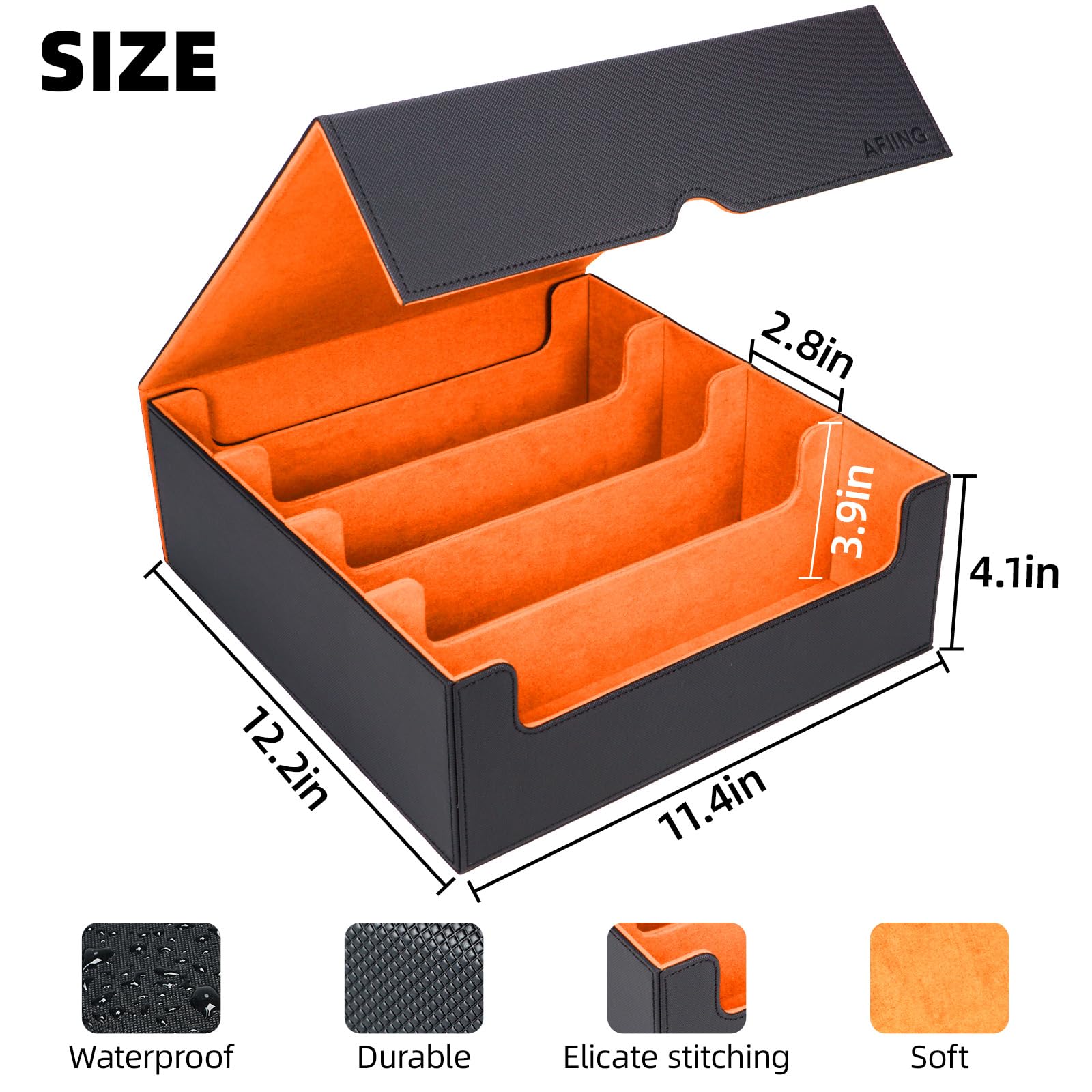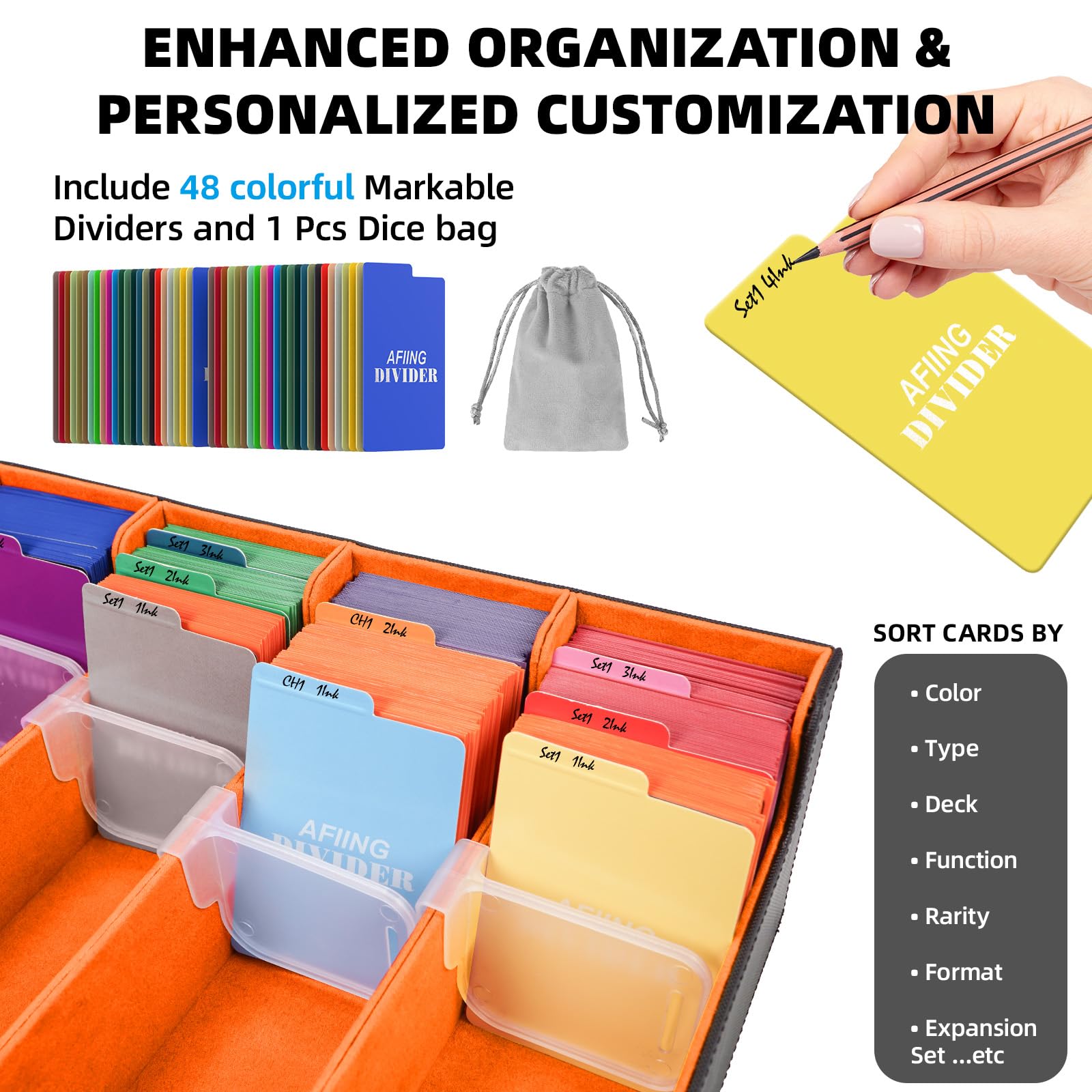 Afiing 4-Row Trading Card Storage Box - Holds 3200+ Cards, 48 Dividers & 4 Stoppers, Card Deck Box For Mtg Tcg Sports Cards - In