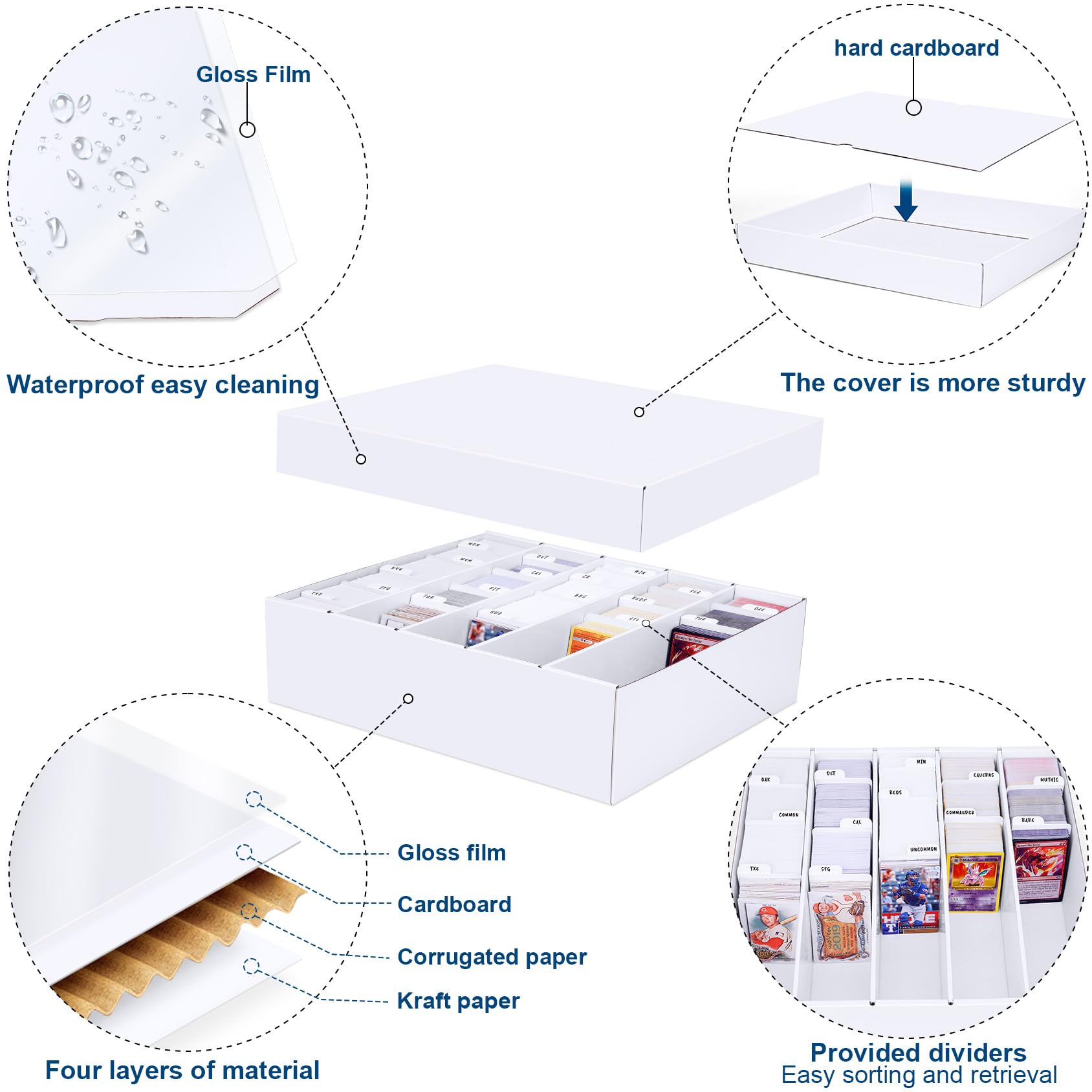5 Row Trading Card Storage Box, 2 Pack Cardboard Storage Box with Divider for Mtg, Tcg, Sports Cards