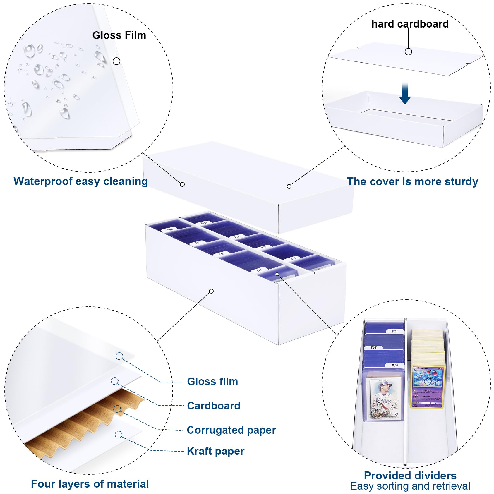 Trading Card Storage Box 6 Pack-1600 Count Cardboard Organizer With Dividers For Mtg, Tcg, Sports, Toploader