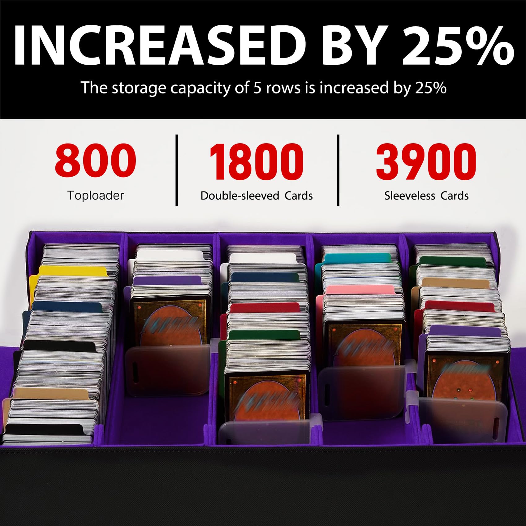 Scimi Magnetic Leather Trading Card Storage Box - 5-Row Deck Case Design, 3900+ Capacity For Yugioh, Mtg, Tcg And Sports Cards,
