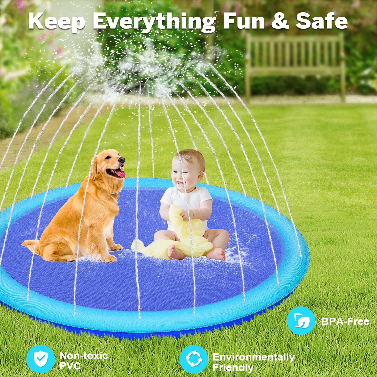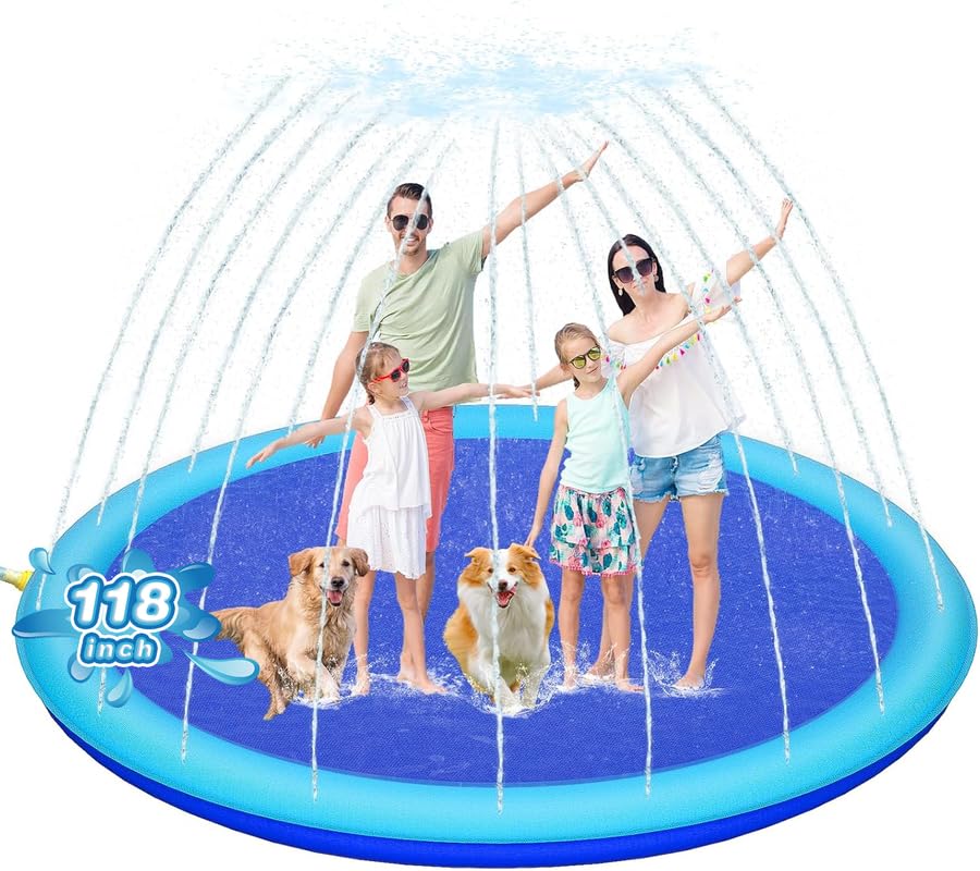 118'' Extra Large Splash Pad for Kids and Dogs, 9.83FT Giant Non-Slip Thickened Sprinkler Pad Pool, Summer Outdoor Water Toys fo