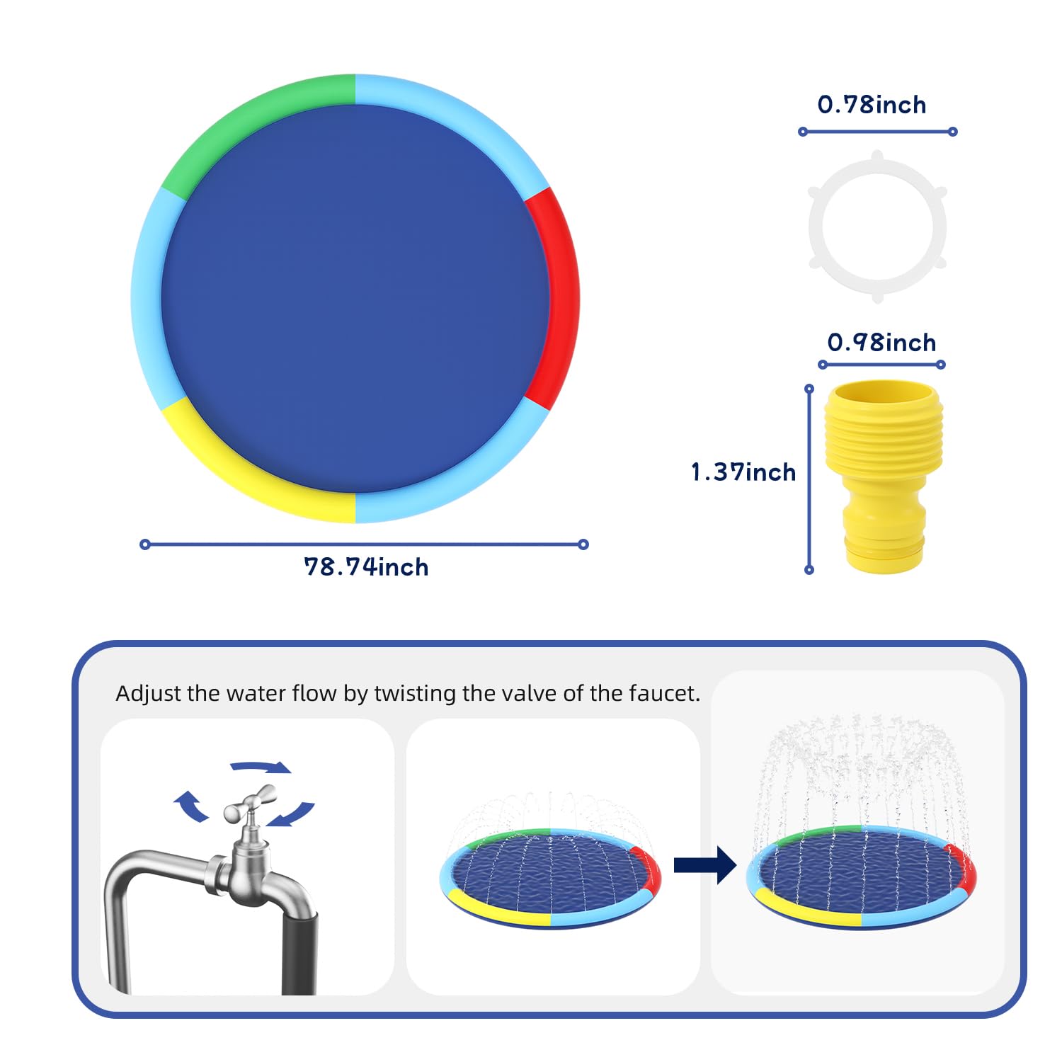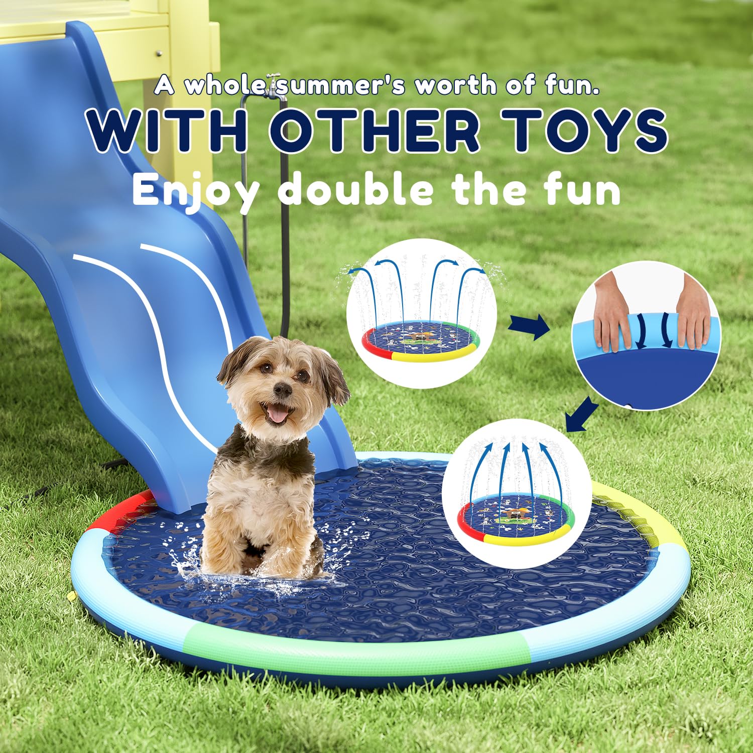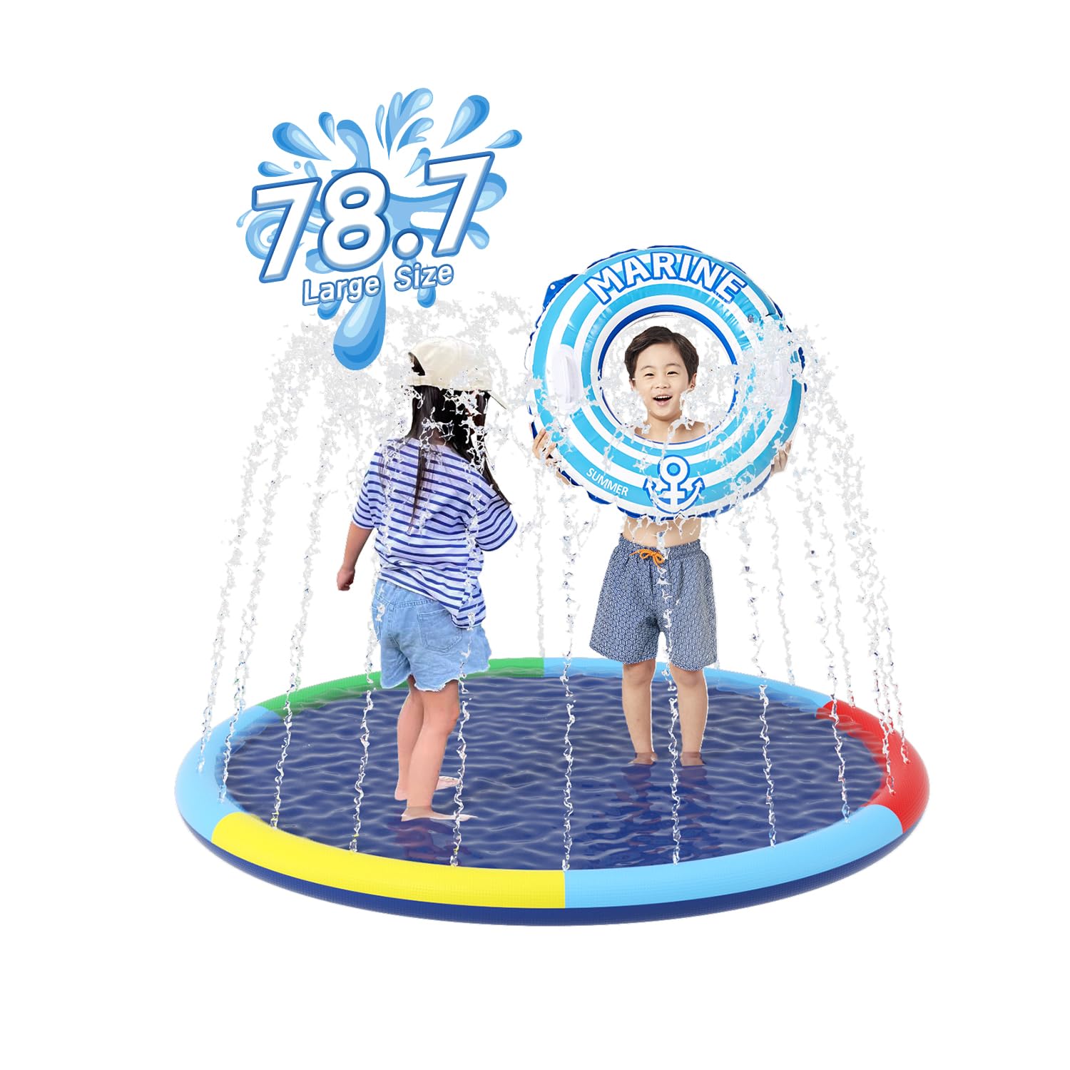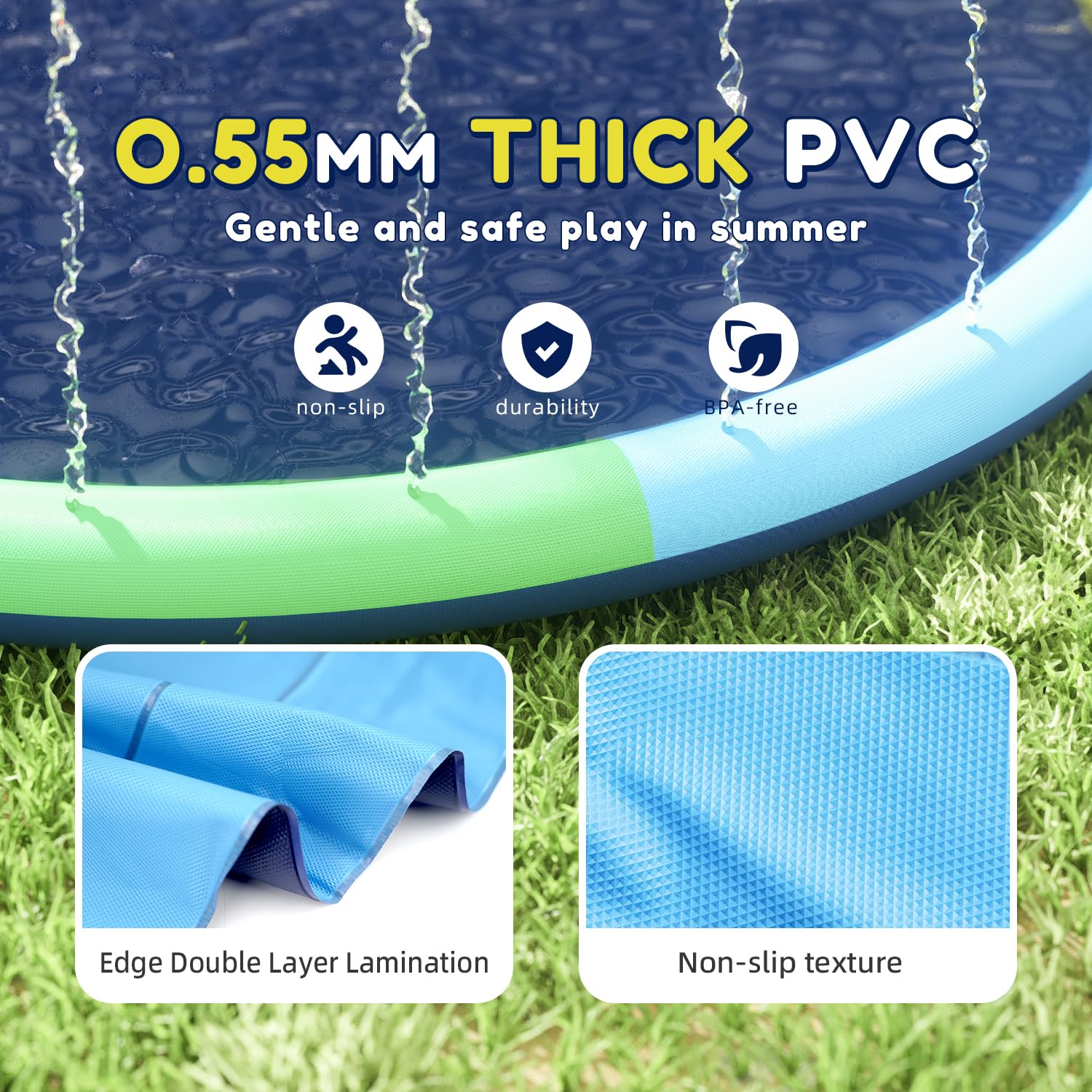 Kids Non Slip Splash Pad -79in Outdoor Sprinkler Play Mat, Dog and Kids Water Toys, Garden Lawn Pool Mat, Summer Outdoor Water T