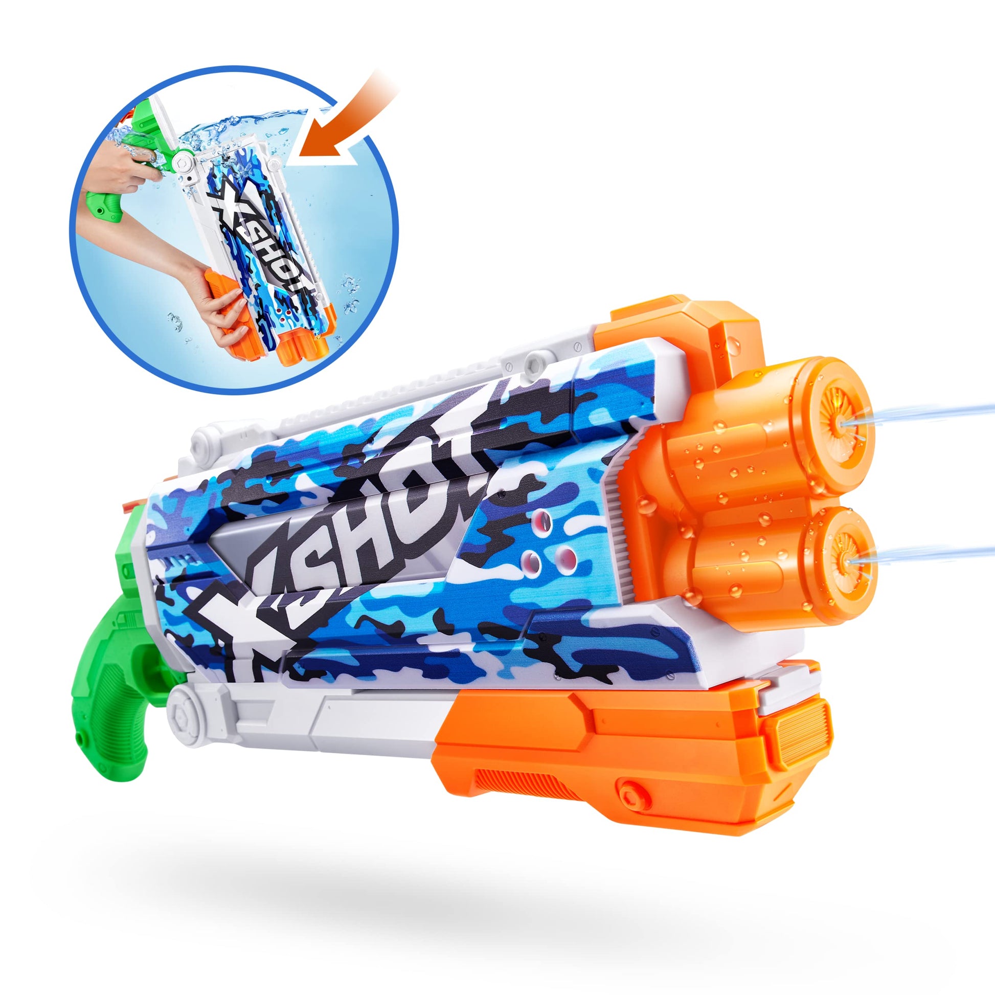 Make Summer your own with the New X-Shot Water Fast Fill Skins range! X-Shot Fast-Fill Pump Action allows you to refill your blaster in 1 second and get back to the water blasting action long before your opponents. Just dunk, fill and close with rapid sealing technology. It shoots up to 30 feet/ 9 meters with its 700ml / 24 Fl OZ. water capacity tank!. Up Your Game!