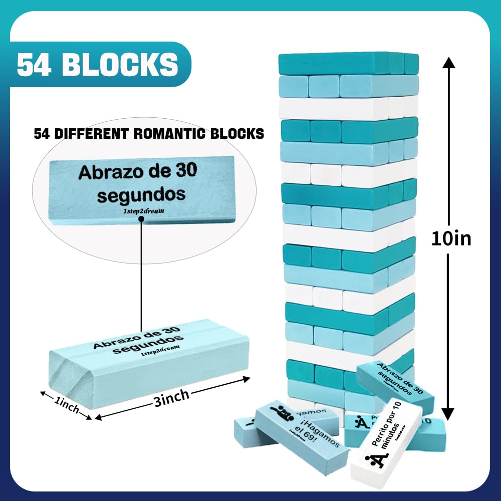1step2dream Spanish Couple Game mature-themed Block Stacking Blocks for Date Night Romantic Wooden Gift