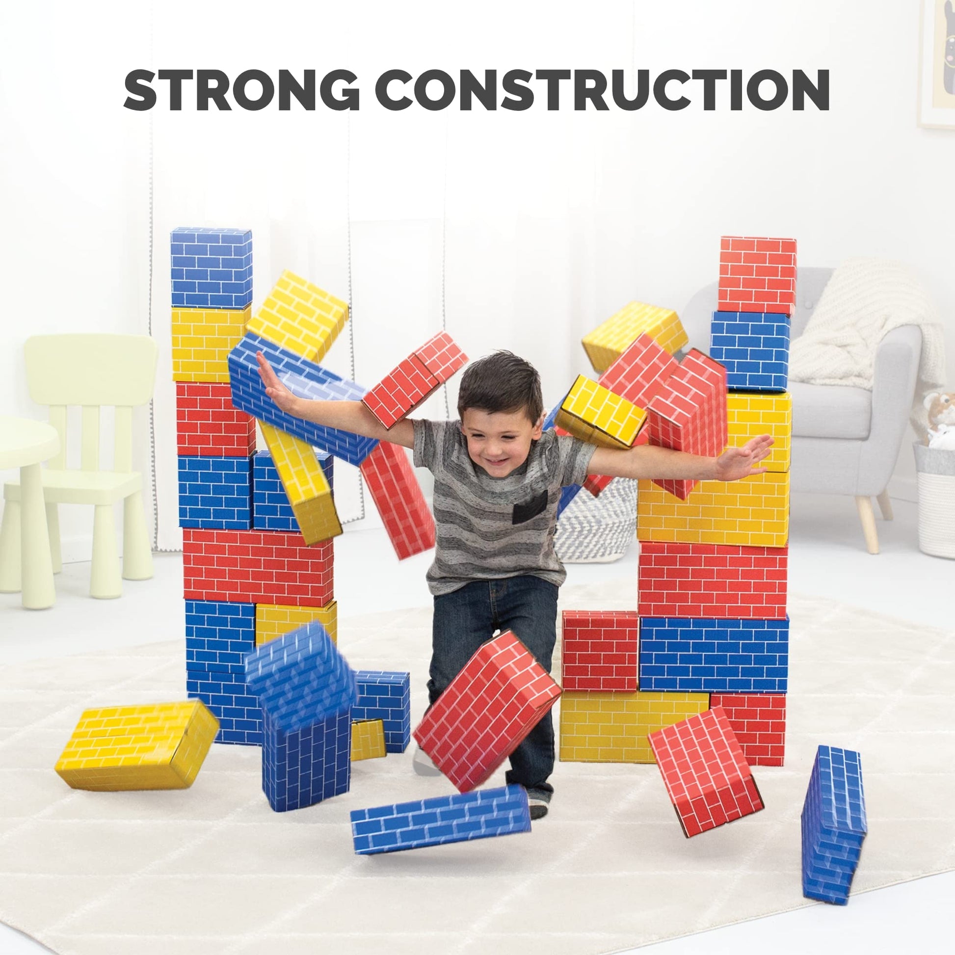 Young creative builders ages three years and up will love playing with these large and durable cardboard building blocks! Kids can enjoy playing with others to help build tall towers and then have fun knocking them down. The blocks are easy to assemble but do require mature-themed assistance. Building blocks offer kids the chance to explore shapes sizes and positions as they build various structures.