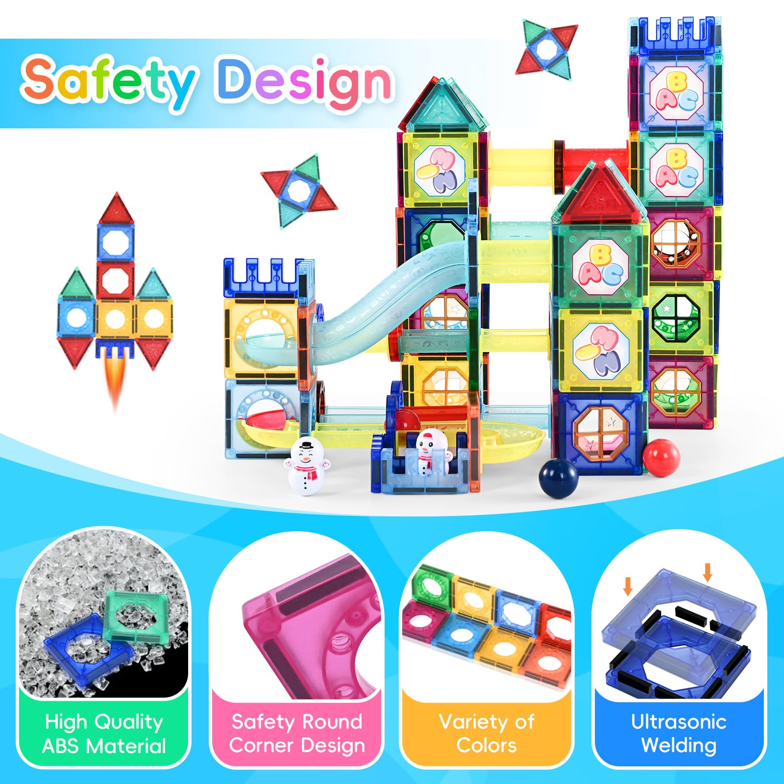 View compareCyddup Magnetic Building Tiles, 158 Pcs Magnetic Tiles For Kids Ages 3-5, 3D Magnet Building Blocks Set, Stem Learning, Educatio