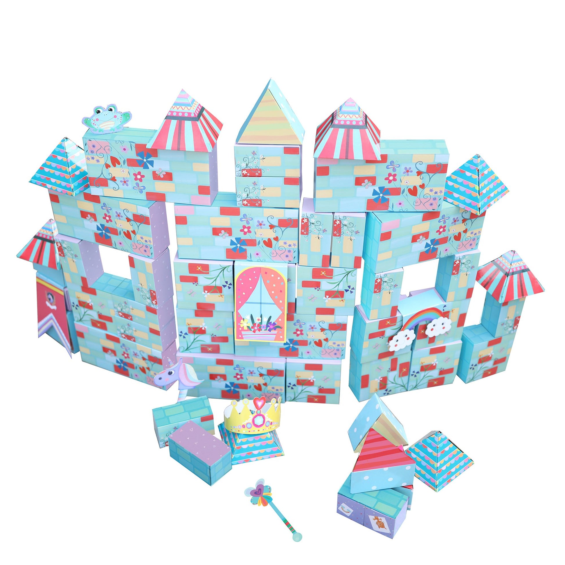 - Q: How many blocks are included in the PlayBrix Royal Adventure set? A: This set includes a total of 46 sturdy blocks that feature castle-themed art and colorful patterns, along with 7 accessories such as a unicorn, a wearable crown, and a wand for enhanced imaginative play.