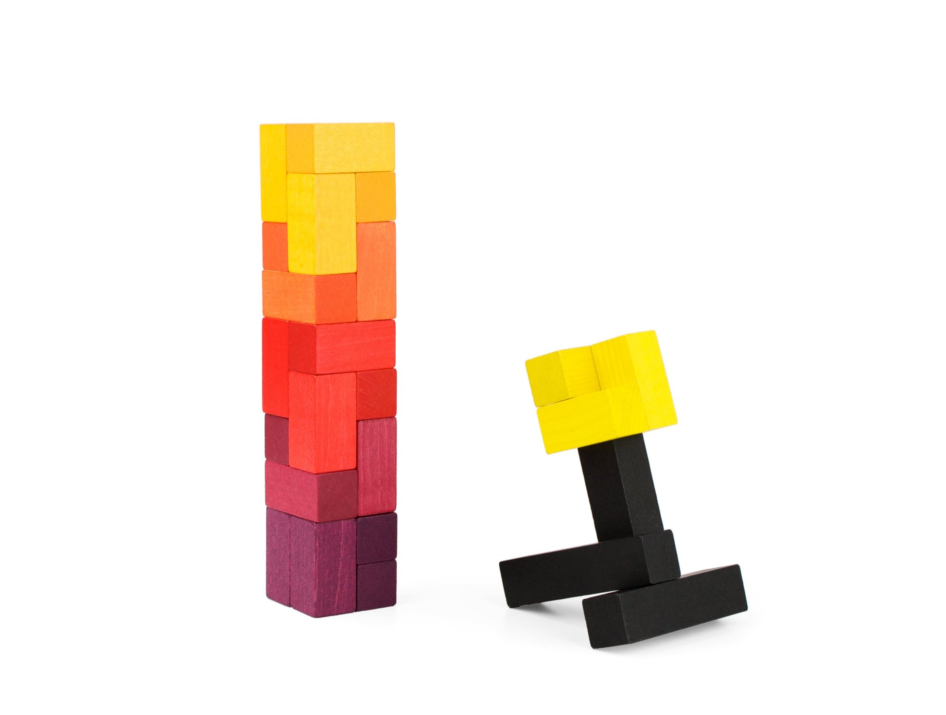 Creative play and colorful d cor of modern art in one. Balance your artwork from seven shades of fine wooden pieces and enjoy countless hours of creative play. Using the customizable base, the colorful pieces can be stacked and arranged into limitless structures, shapes, and configurations. Its ideal for offices, waiting rooms, media centers, or anywhere you want to inspire creativity and activity. This playful modern art makes a great gift for creative people of all ages.
