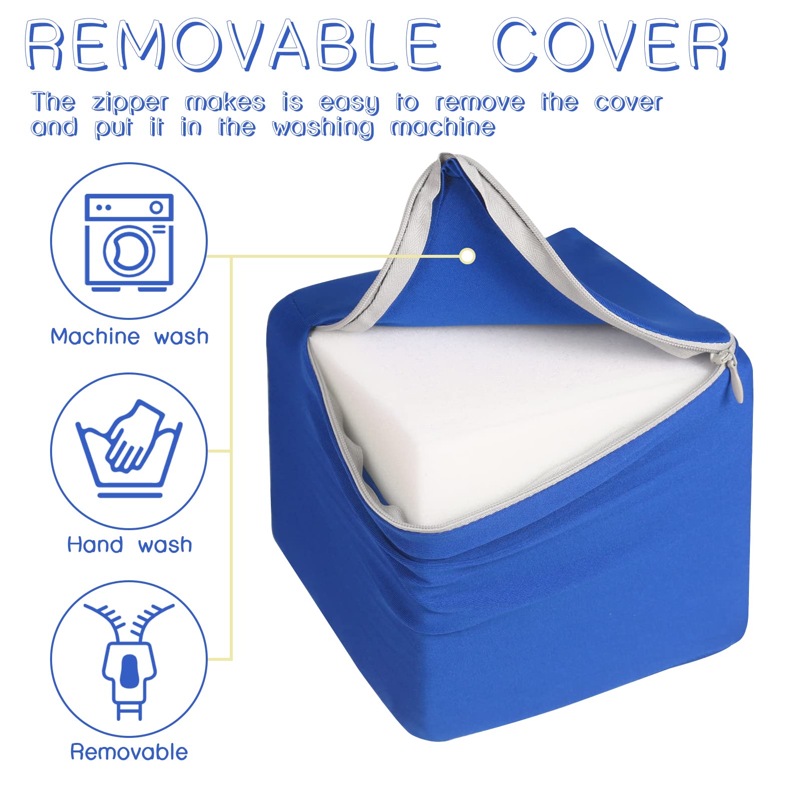 Packing Included: 16 x Colorful foam cube blocks (8 X red 8 X dark blue) Special Features: 1)Soft and light: Children like to throw their toys with mature-themeds/friends and the soft material can prevent children from being smashed during play. 2) Easy to clean: The cover is removable and machine washable. You can remove the dirty cover and wash it to keep a clean toy at all times. 3) Exquisite detailing: The stitches of the cloth cover are manually sewn and the zipper head is perfectly hidden in the cloth cover every detail is done for the child with full consideration. Material of the cover:93% polyester and 7% spandex Filling: Polyether foam sponge Tips: The blocks are compressed packaging. So thay may have slight deformation during transport. They will regain their shape in 1-2 days or you can squeeze and slap the sides to speed up the recovery.