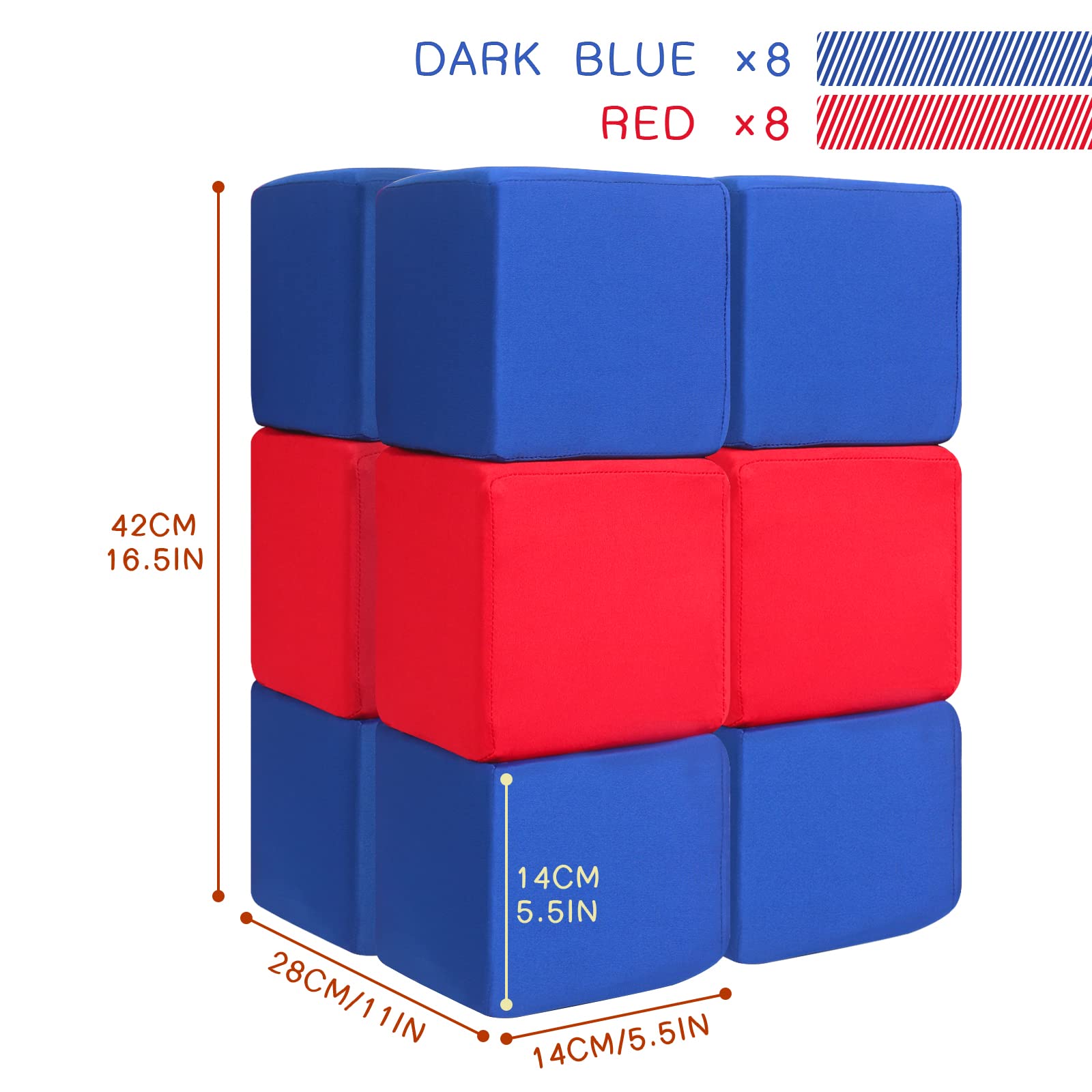 UHAPPYEE Toddler Foam Blocks 16 PCS 5.5 inch Colourful Foam Soft Cubes for Kids Stacking Block Sets Building Blocks tossing Toys(Blue and Red)