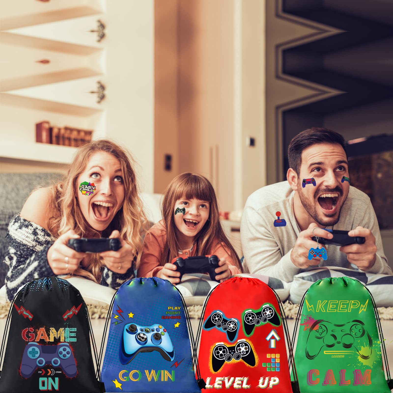 • Super Value Video Game Party Favors: Our set includes 12pcs video game party drawstring bags, each measuring 16.5 x 13.3 inches, along with fun accessories like slap bracelets and keychains.