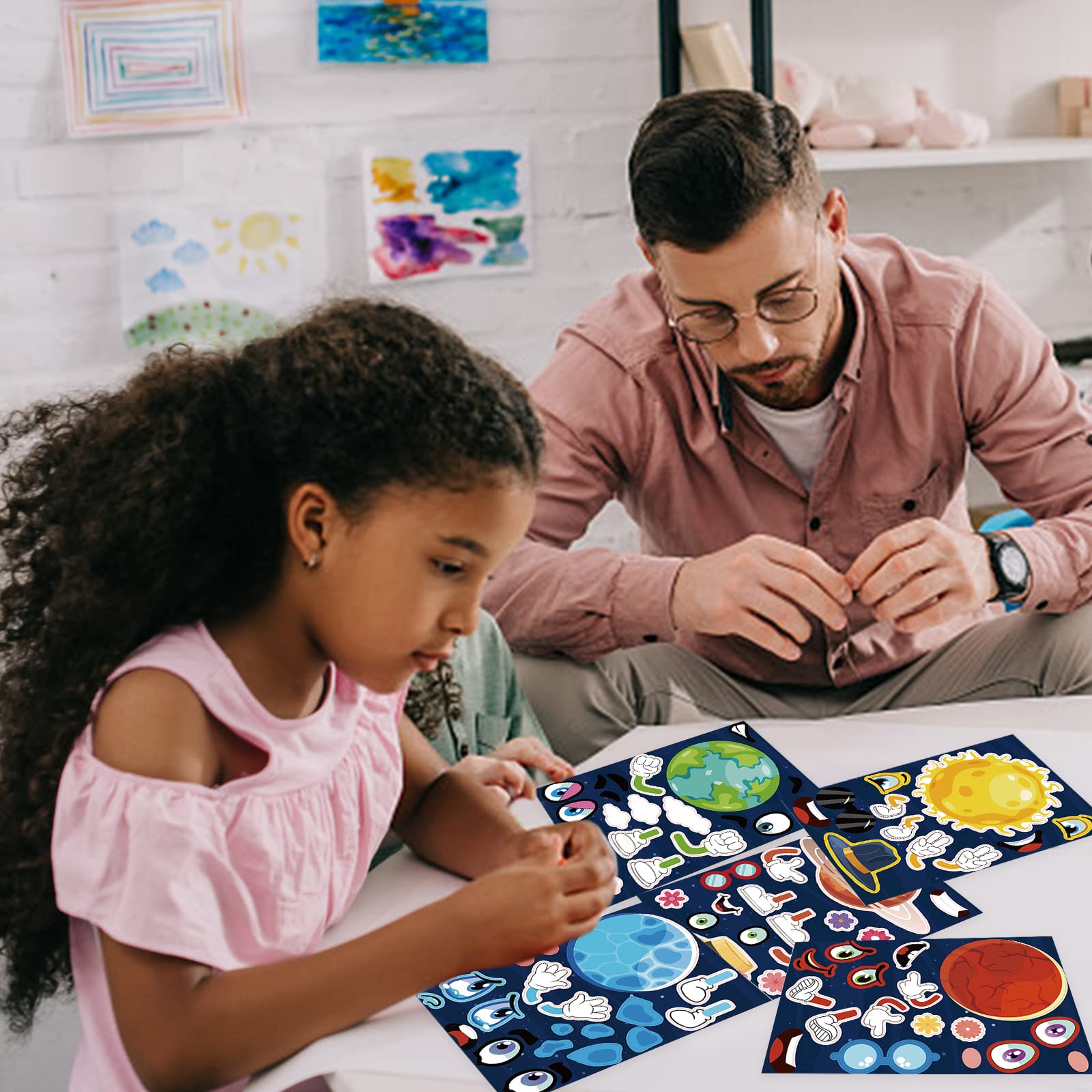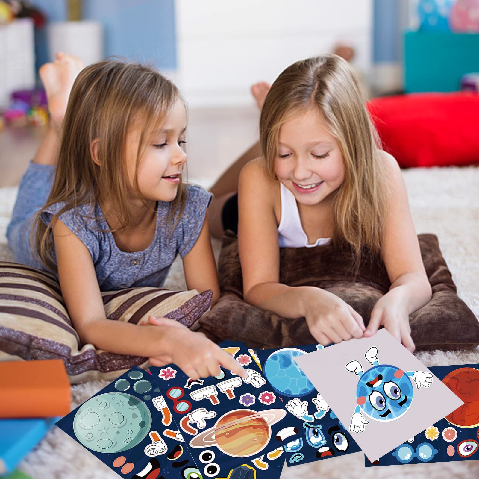 Our Make A Face Stickers Can Make Different Space Theme Patterns, Children Can Make Their Own, Mix And Match Freely, And Make Their Own Stickers! They Can Improve Their Hands-On Ability, Make Children More Imaginative And Creative! Specifications: Material: Copperplate Paper Color: As The Pictures Shown Size: Length: 21Cm/8.3 Inches, Width: 15Cm/5.9 Inches Quantity: 6 Designs 24 Sheets Fun Design: Bright, Colorful Stickers, Perfect Size, Cute Space Theme, Every Planet And Sun Has Different Facial Expressions And Accessories, These Can Be Freely Matched Stickers Can Let Children Give Full Play To Imagination And Give Them Endless Hours Of Fun. Premium Material: These Stickers Are Made Of High-Quality Thick Copperplate Paper, The Surface Is Covered With Film, Vivid Patterns And Bright Colors, The Stickers Are Self-Adhesive, Easy To Stick And Remove, Can Be Used Multiple Times. Multiple Usages: Cute Stickers Can Be Used As Party Decorations, But Also For School, Classroom, Family Craft Games To Make Children More Imaginative And Creative! Good Gift: Stickers Can Be Used As Awards, Classroom Awards, Teacher Awards, Classroom Gifts, Party Gift Bags, As Well As Children'S Birthday Gifts, Holiday Gifts, Etc If You Have Any Questions About This Purchase, Please Contact Us Via Email And We Will Give You A Satisfactory Reply Within 24 Hours