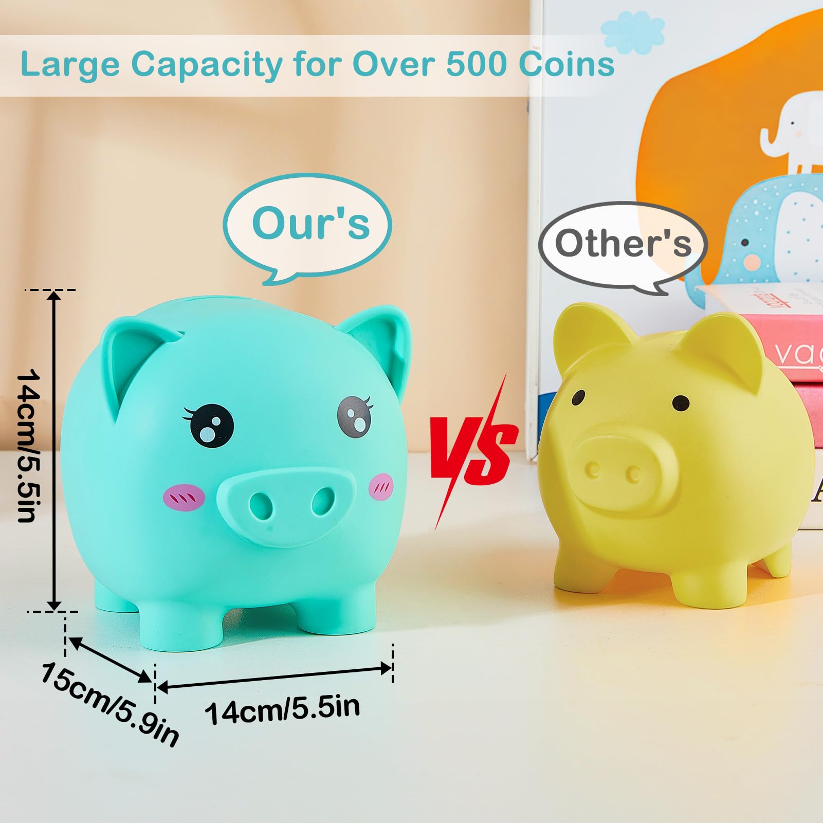 Cute & Large Size: 5.9 X 5.5 X 5.5 Inches, A Large Piggy Bank That Will Grow With Your Little One As They Learn To Save Their Money And They'Ll Treasure For Years To Come.