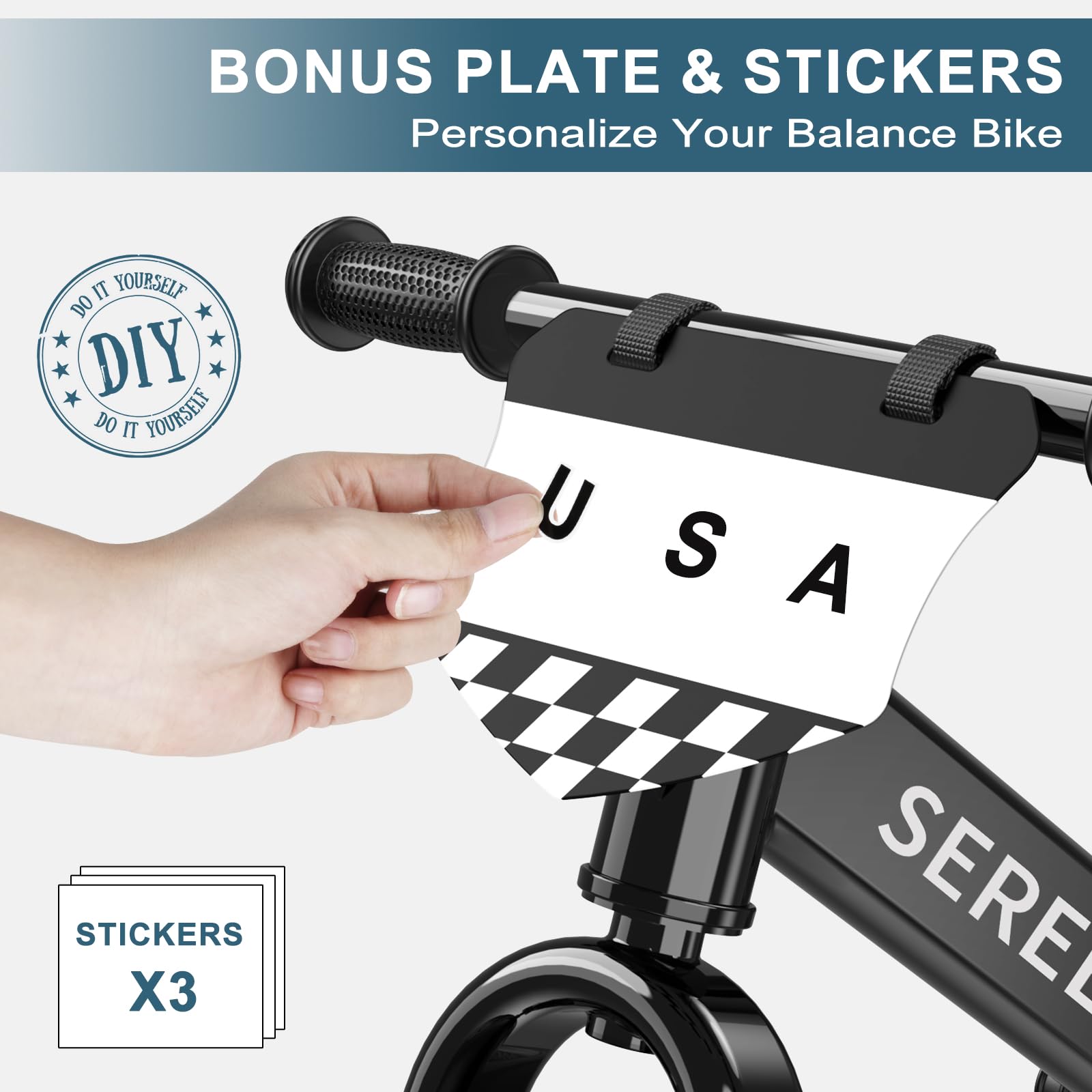 Sereed 12 Inch Toddler Balance Bike, No Pedal Bicycle For Kids 24 Months To 5 Years Old, Customize Plate (3 Sets Of Stickers Inc