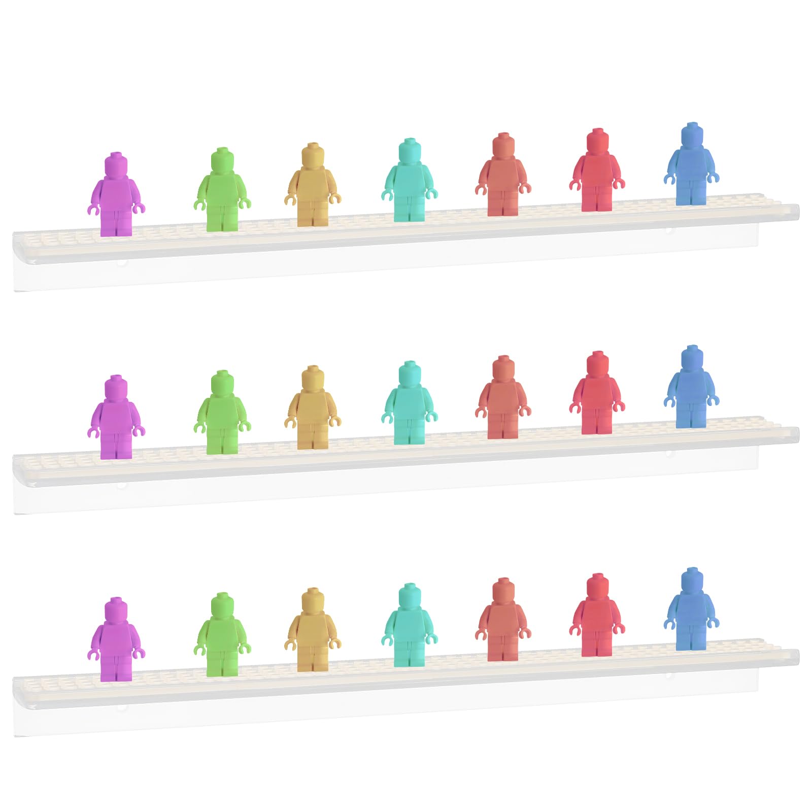 3-Pack Display Shelves For Minifigure - Wall Mount Shelf For Building Bricks Holds Up To 72 Figures, Cabinet Acrylic Floating Di