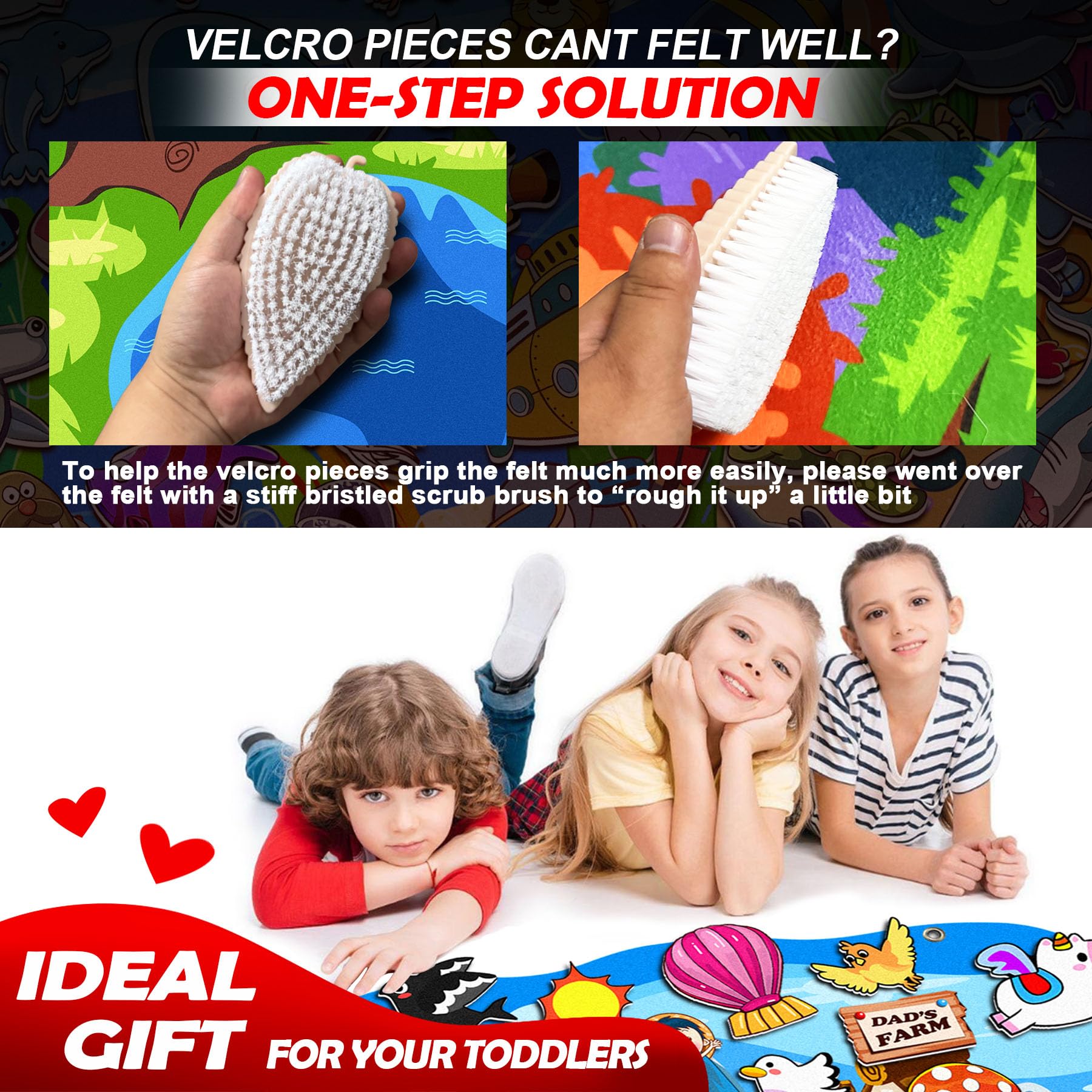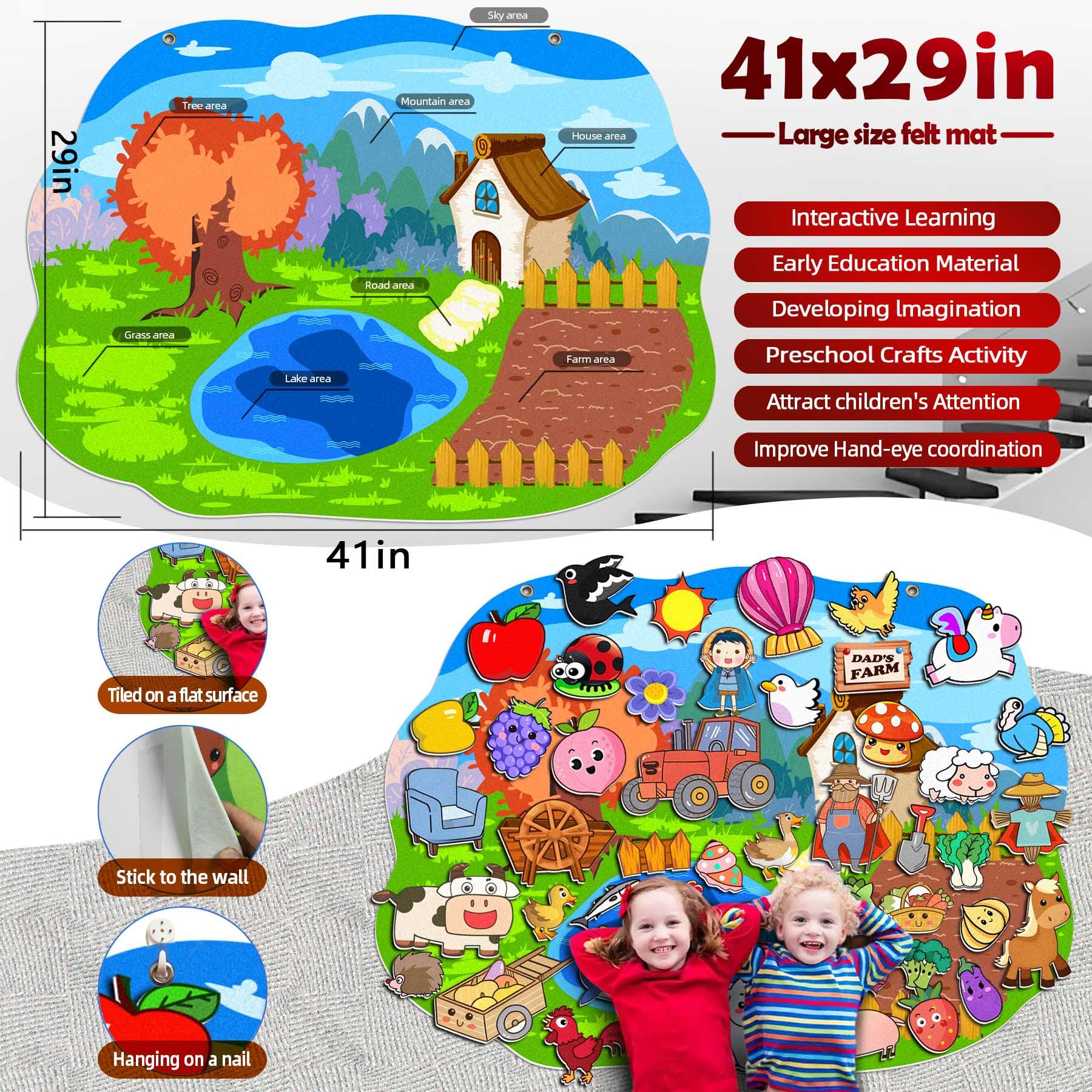 Unlock your child's creativity and imagination with a felt board for toddlers! This engaging educational toy encourages hands-on learning through storytelling, letter and number recognition, and creative play. The vibrant colors and soft texture make it a delightful tactile experience for little hands. With an array of felt pieces to arrange and rearrange, your toddler can craft endless stories, practice fine motor skills, and explore their artistic side. Compact and portable, this felt board is the perfect travel companion for keeping young minds entertained on the go. Foster your child's development through open-ended, screen-free play with this versatile and captivating felt board.