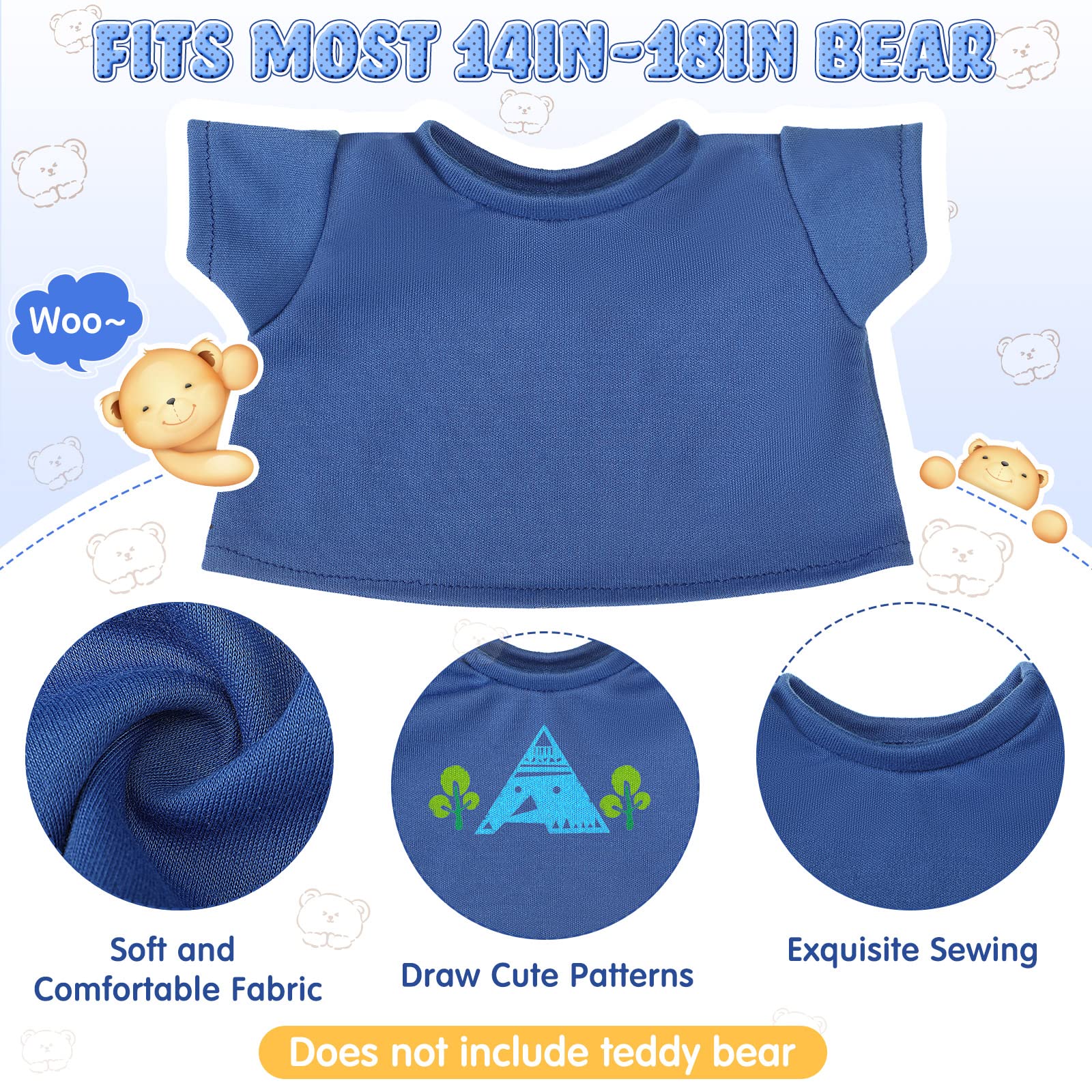 - Q: What size of plush toys do these bear shirts fit? A: The Skylety Bear Tee Shirts are designed to fit most plush toys that are between 14 to 18 inches in size, making them a versatile choice for various stuffed animals.