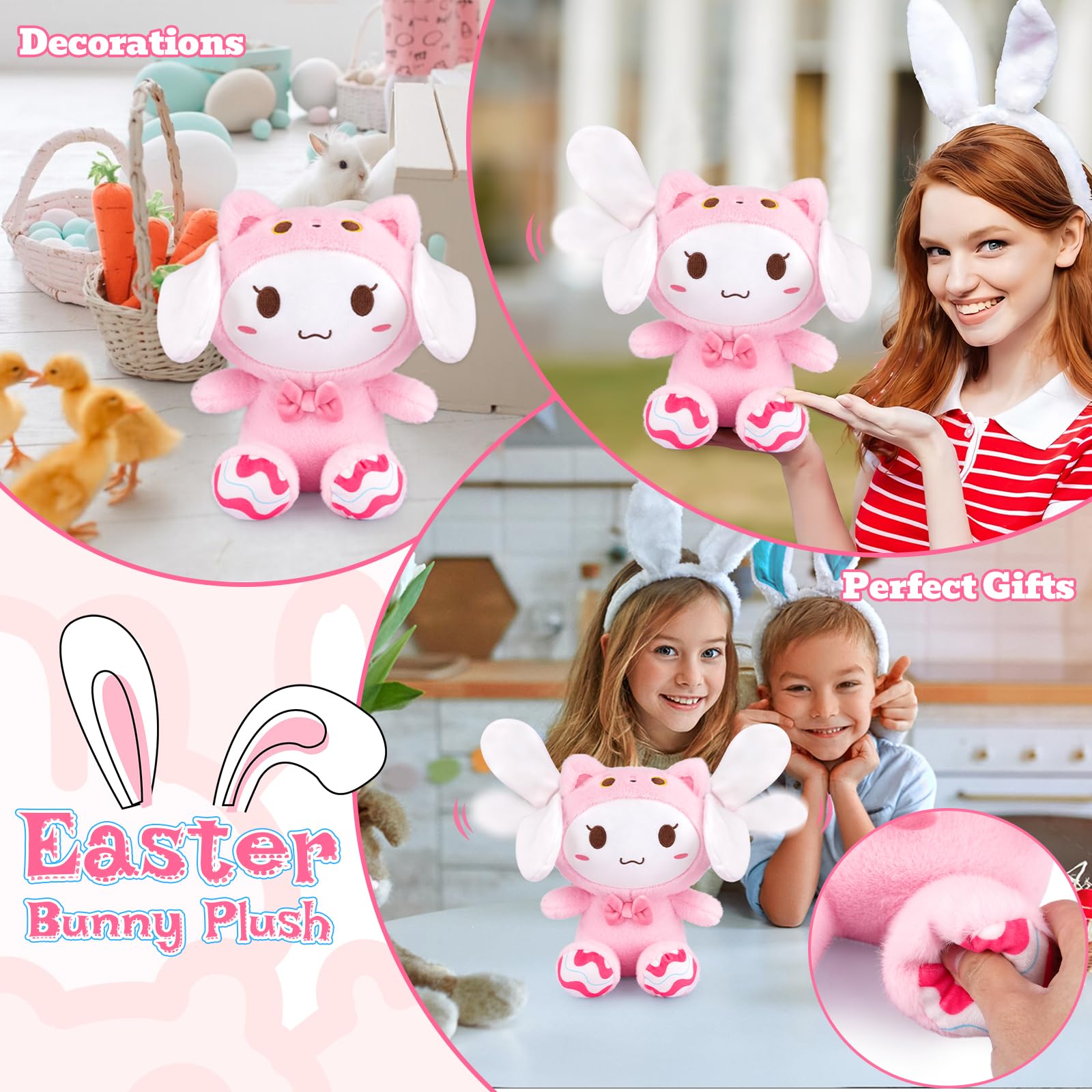 Easter Bunny stuffed animal, 9.8in Pink Cat Bunny Stuffed Animal Ear Moving Jumping, Cute Easter Bunny Plush Toys Easter Gifts for Kids Teens Adults Boys and Girls, Easter Decoration