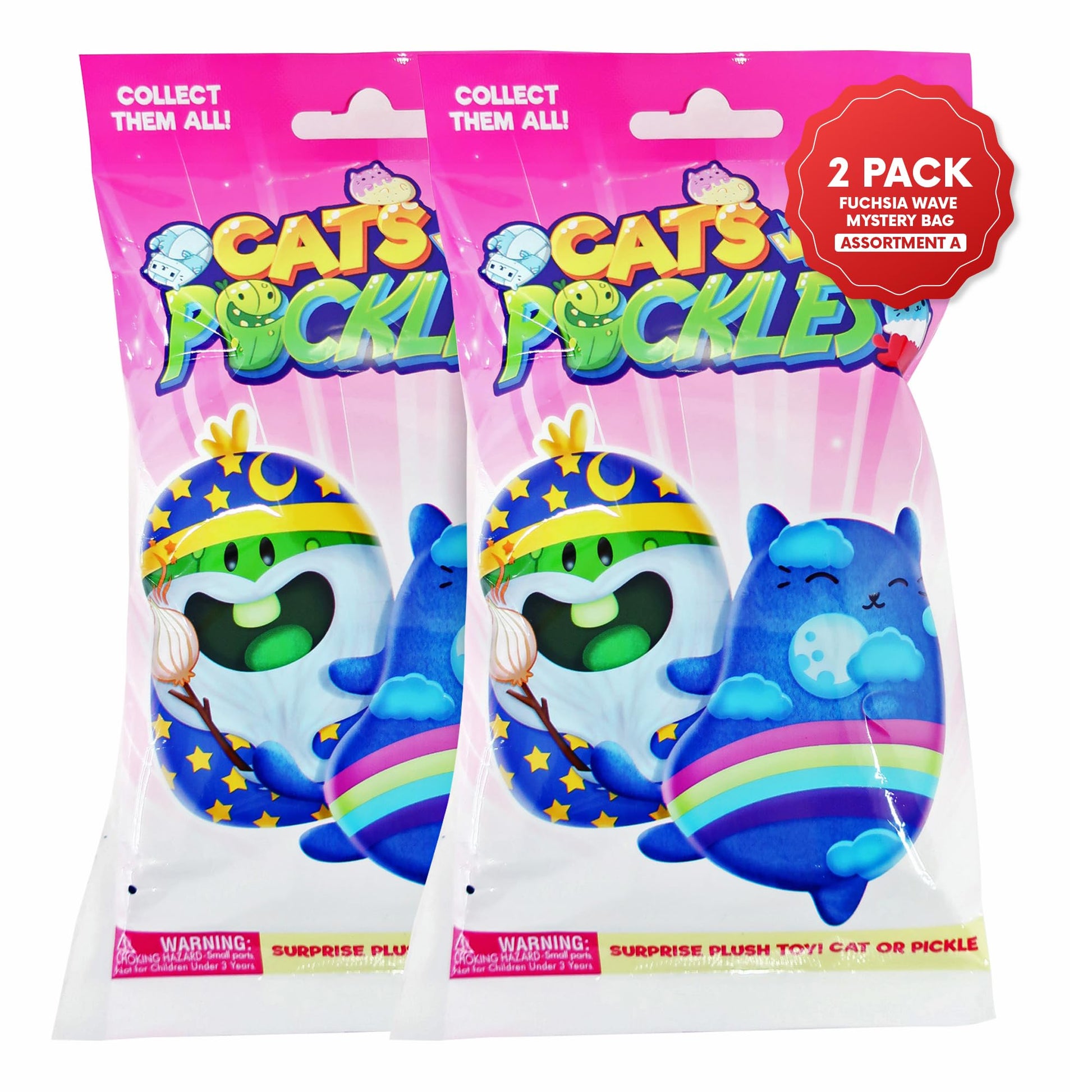 - Q: What characters are included in the Cats vs Pickles Fuchsia Wave 2pk Mystery Bags? A: The Cats vs Pickles Fuchsia Wave 2pk Mystery Bags may include characters such as Pink Chiffon, EnchantaCat, Jester, Coder Cat, Adam, Tina Tuna, Gourdo, Black Cat Lagoon, Axel, Lunar Rainbow, Sir Brunor, and Pickledor. Each bag contains a surprise bean plushie, ensuring a fun and unique experience.