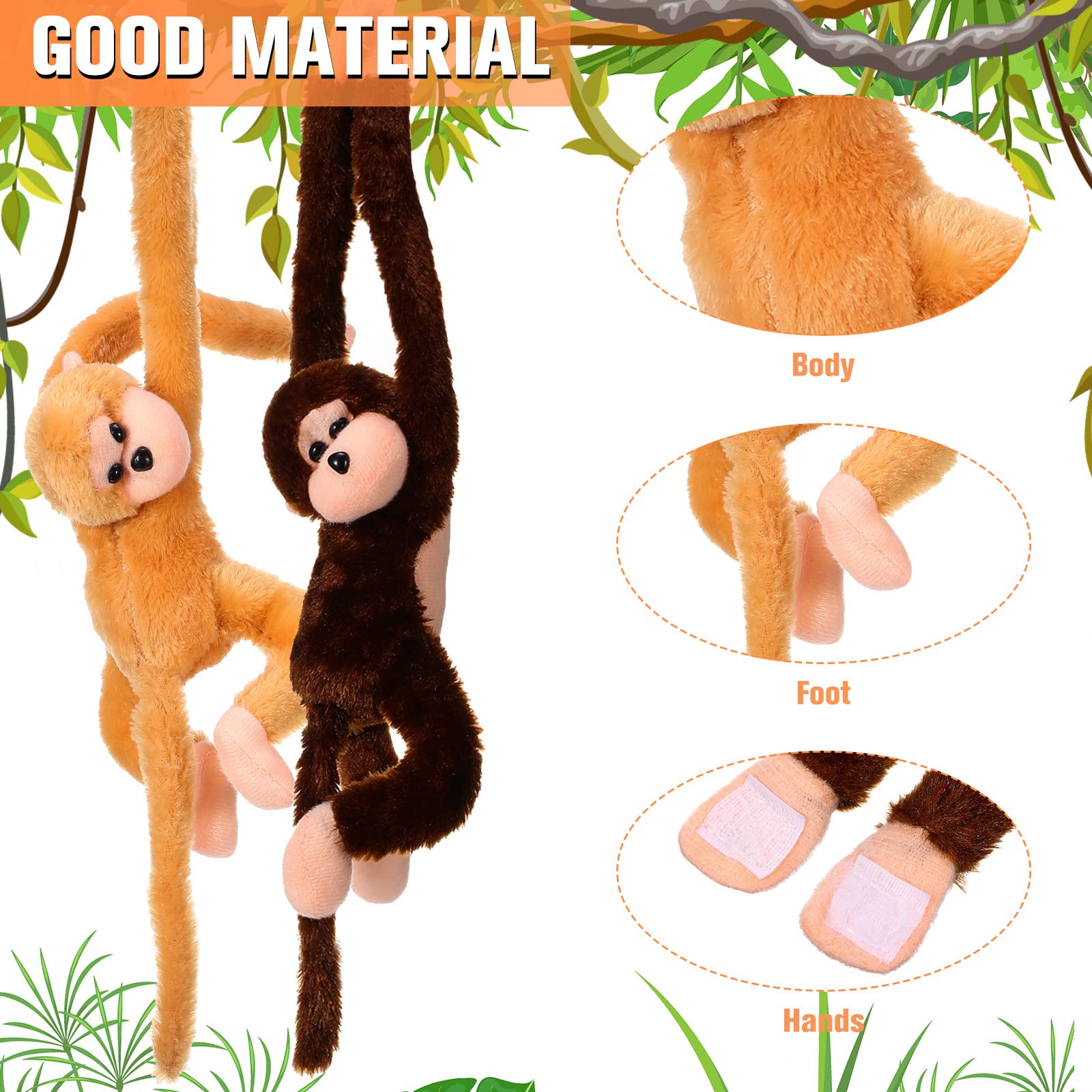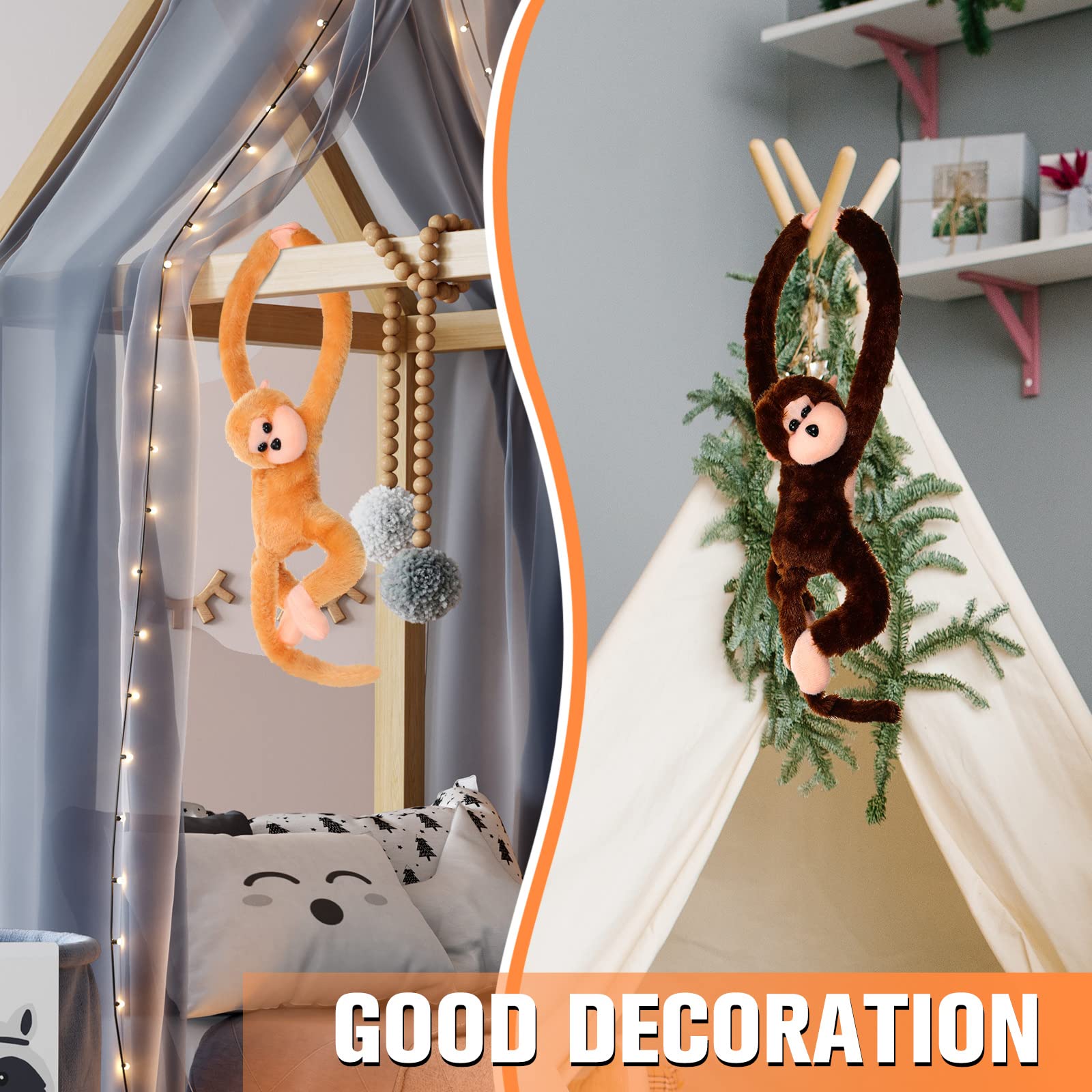 Chivao 2 Pcs Hanging Monkey Stuffed Animal, Hanging Monkey Plush With Hook And Loop Fasteners Hands Stuffed Toy For Birthday Party Favors Decorations, Brown And Khaki(20 Inch)