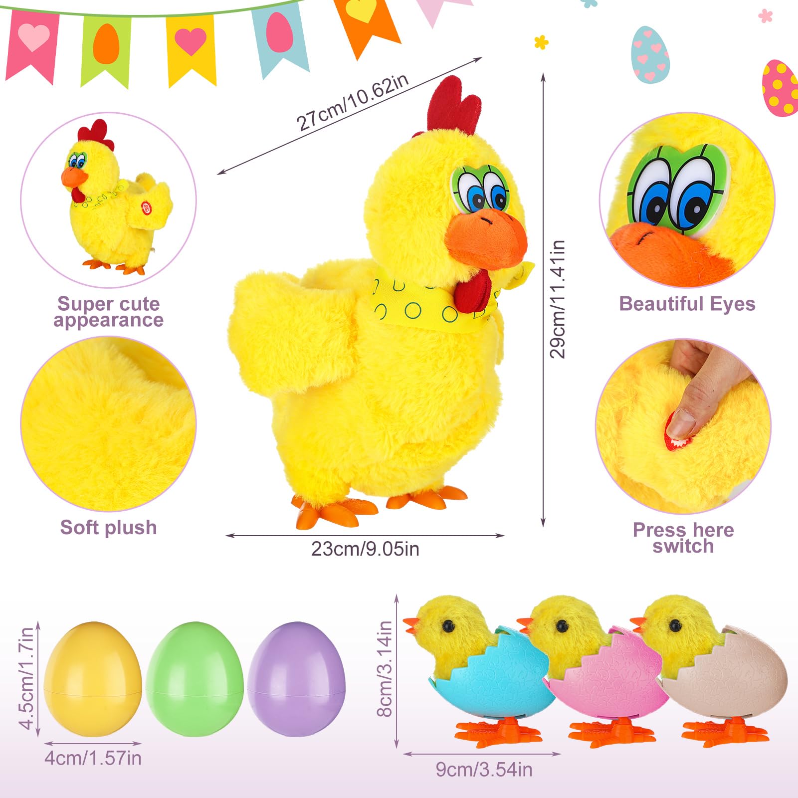 View compareFoilswirl 11 Pcs Easter Plush Toys Include Electric Stuffed Laying Egg Chicken Dancing With Sound Music Interactive Hopping Rabb