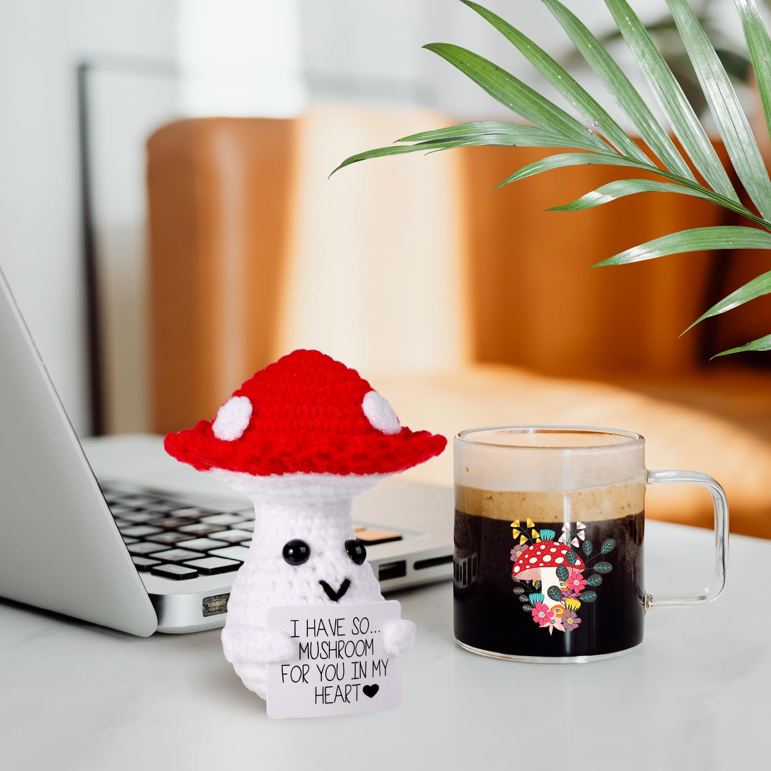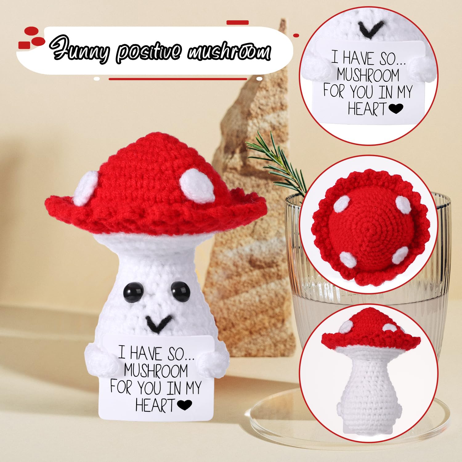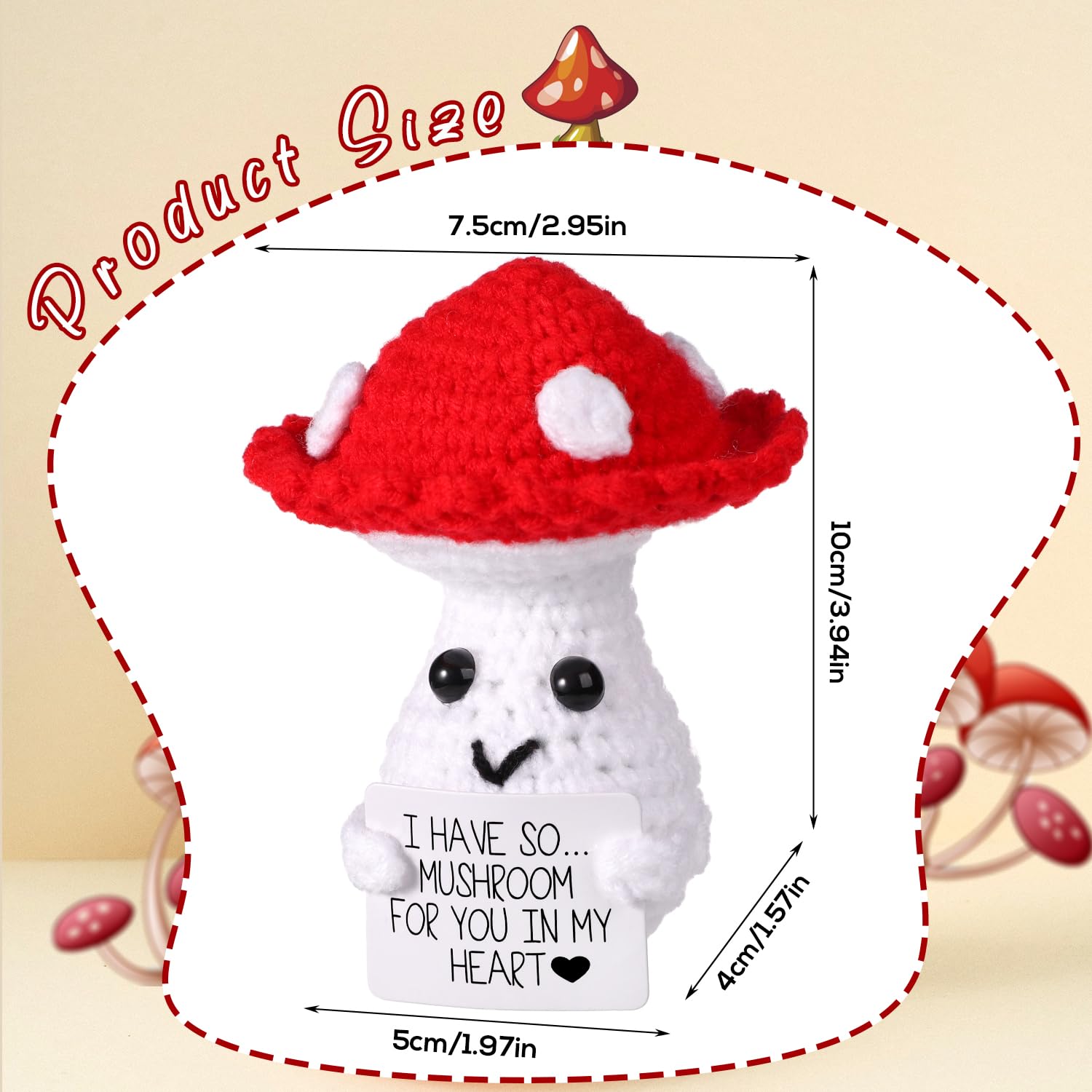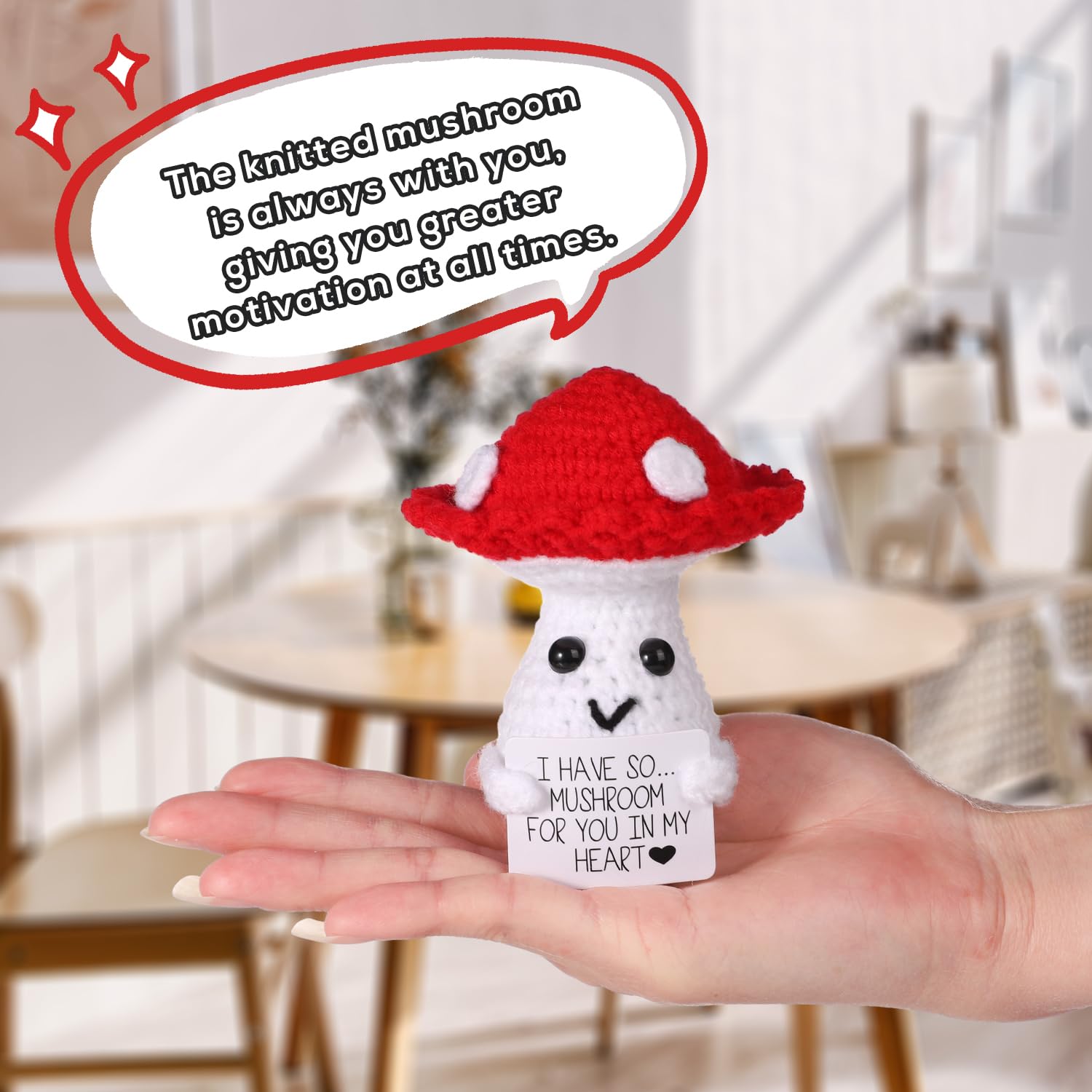 Funny Positive Mushroom, 3.93In Creative Cute Emotional Support Knitted Wool Potato Doll With Inspirational Card Mushroom Nuggets Crochet Lucky Gift For Plush Birthday Party Decoration Encouragement