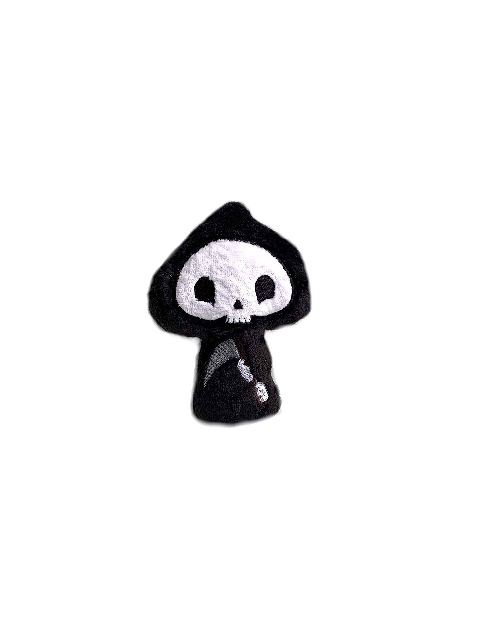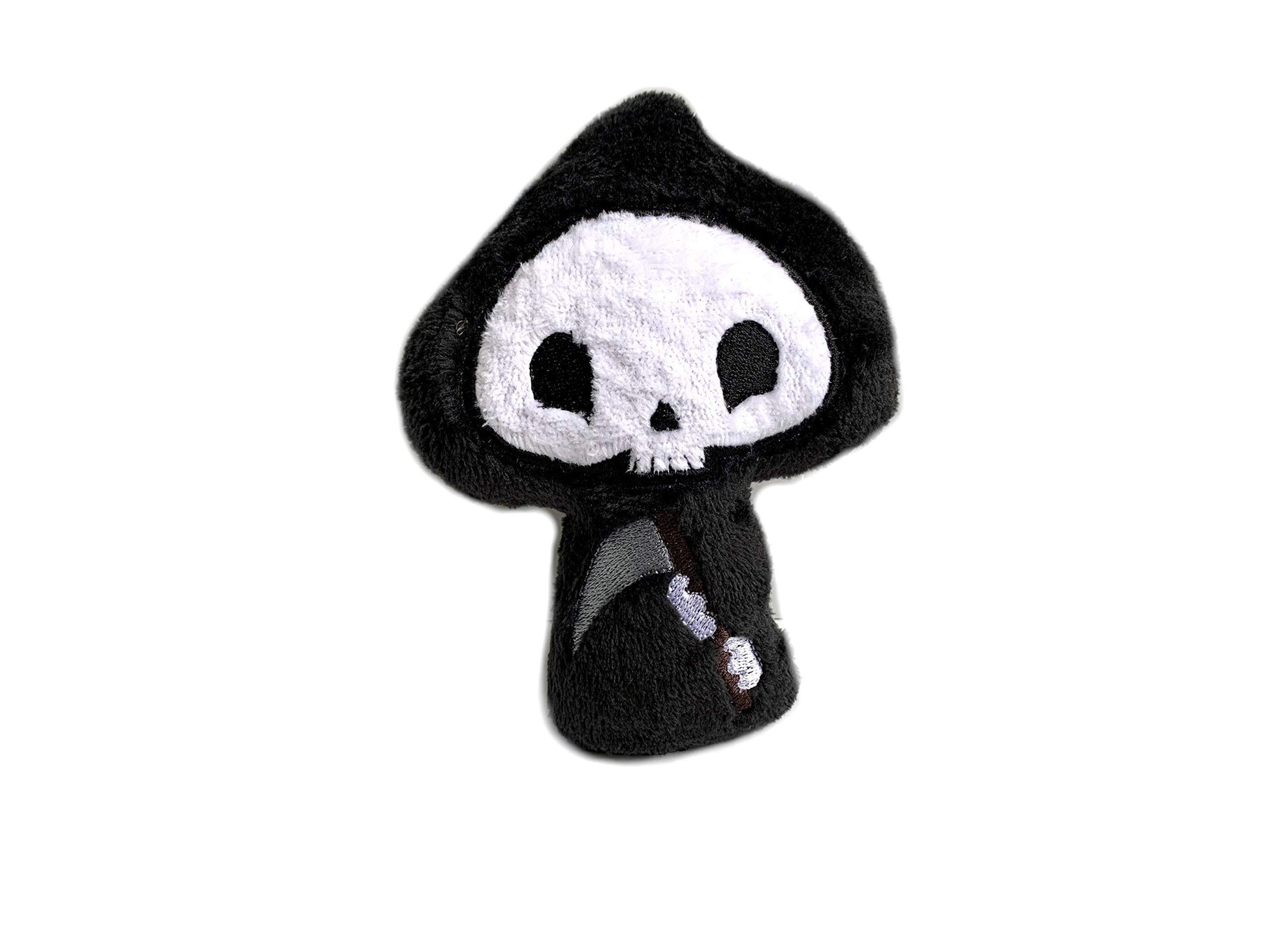 Baby, don't fear the reaper. This cuddly reaper is crafted from super soft minky, and is stuffed with polyfil, making cleanup a breeze. It measures 6.5'' long and 4'' wide at its widest point. The grim reaper has expertly embroidered features. This Grim Reaper plushie would be the perfect gift for the mortician or funeral director in your life, or the friend that enjoys dark humor. All of our plushies are one of a kind. Exact fabric shades and facial placement may vary. All of our items are IN STOCK and ready to ship - perfect for last minute gift giving.