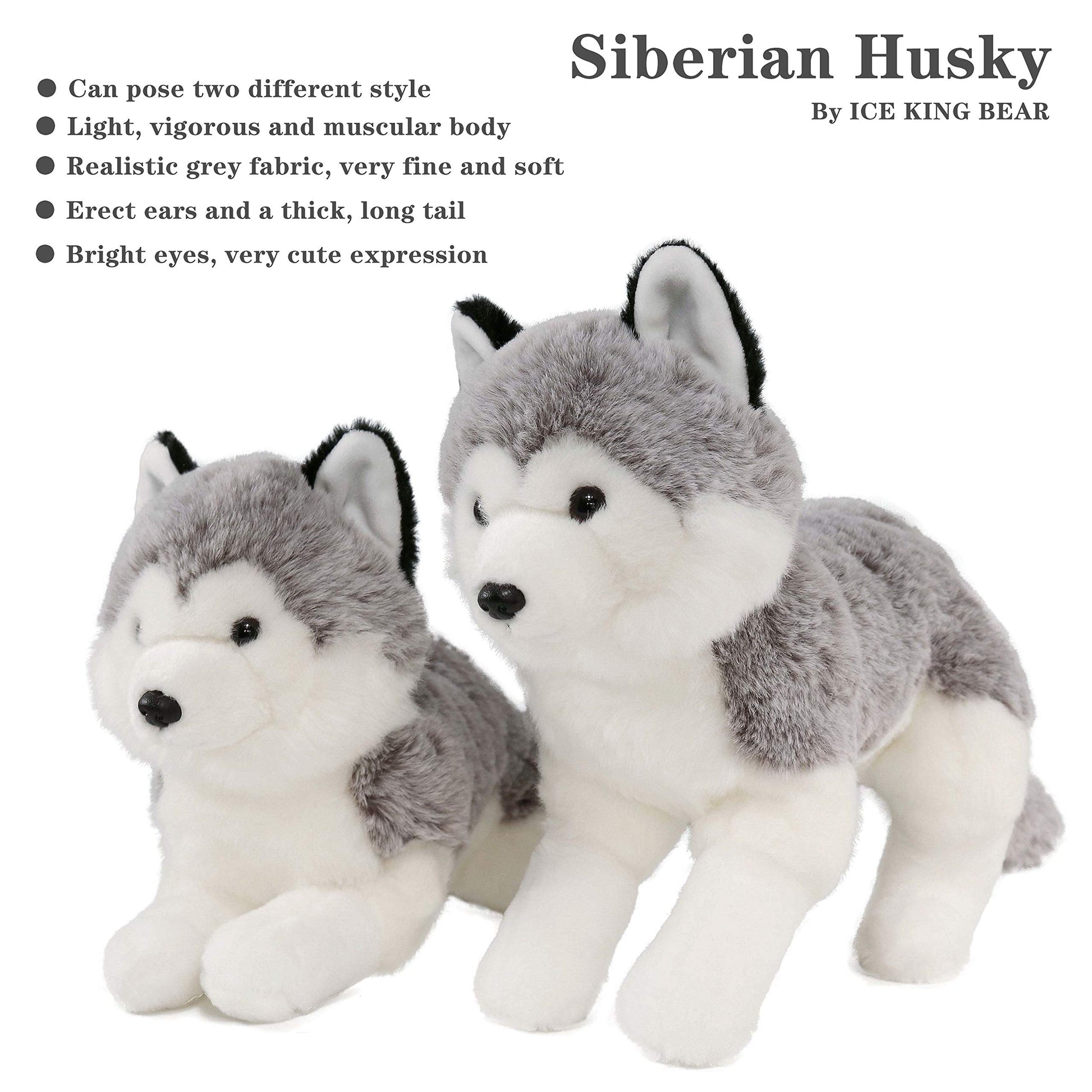 Ice King Bear Lifelike Siberian Husky Stuffed Animal - Plush Toy - 13 Inches Length (Original)