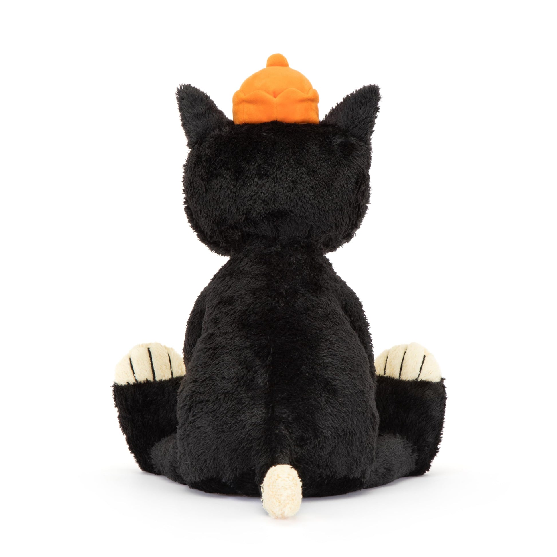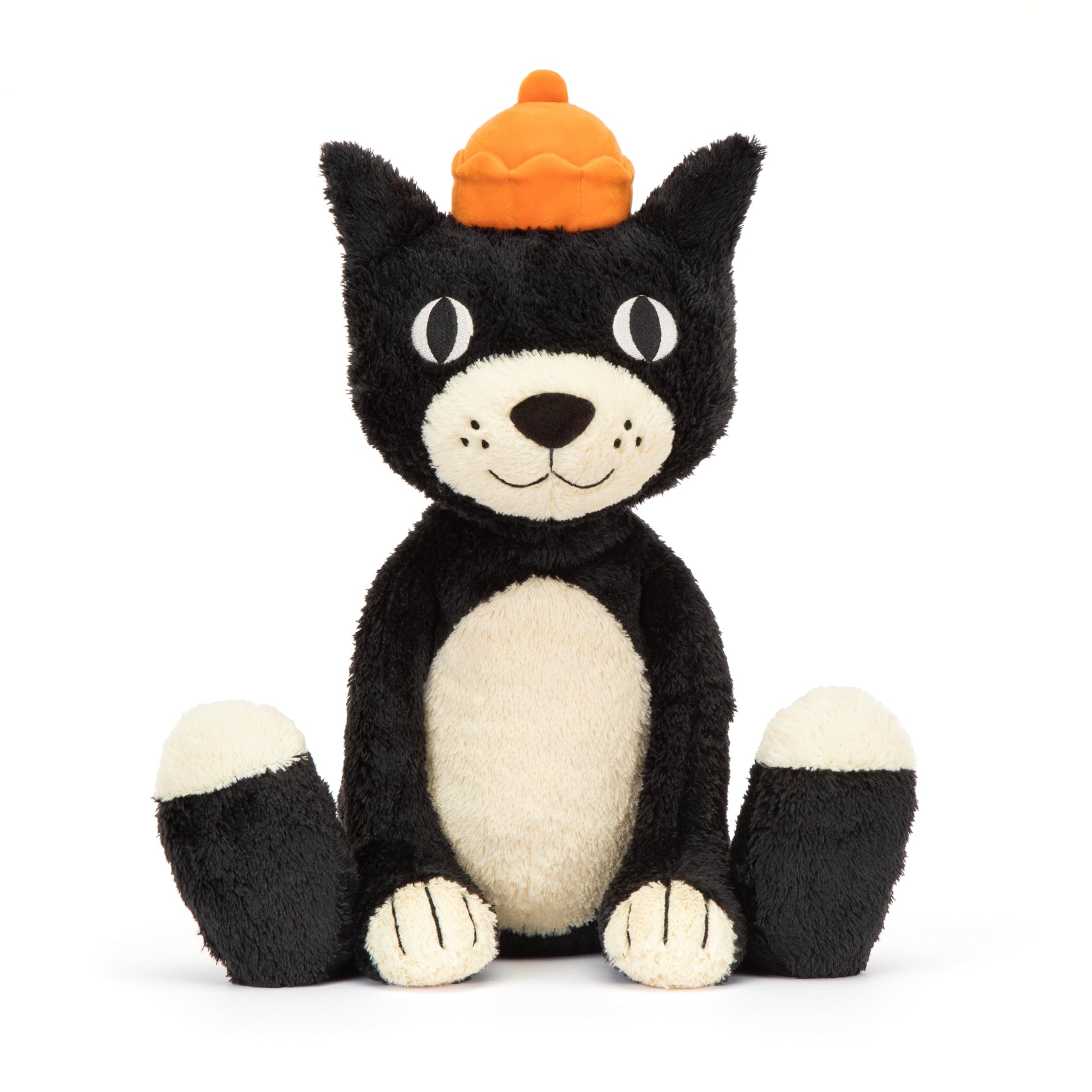The iconic Jellycat is here in soft black fur with cream tummy and paws. With a long tail and pointy ears, this cat has a bright orange velveteen jelly on his head!