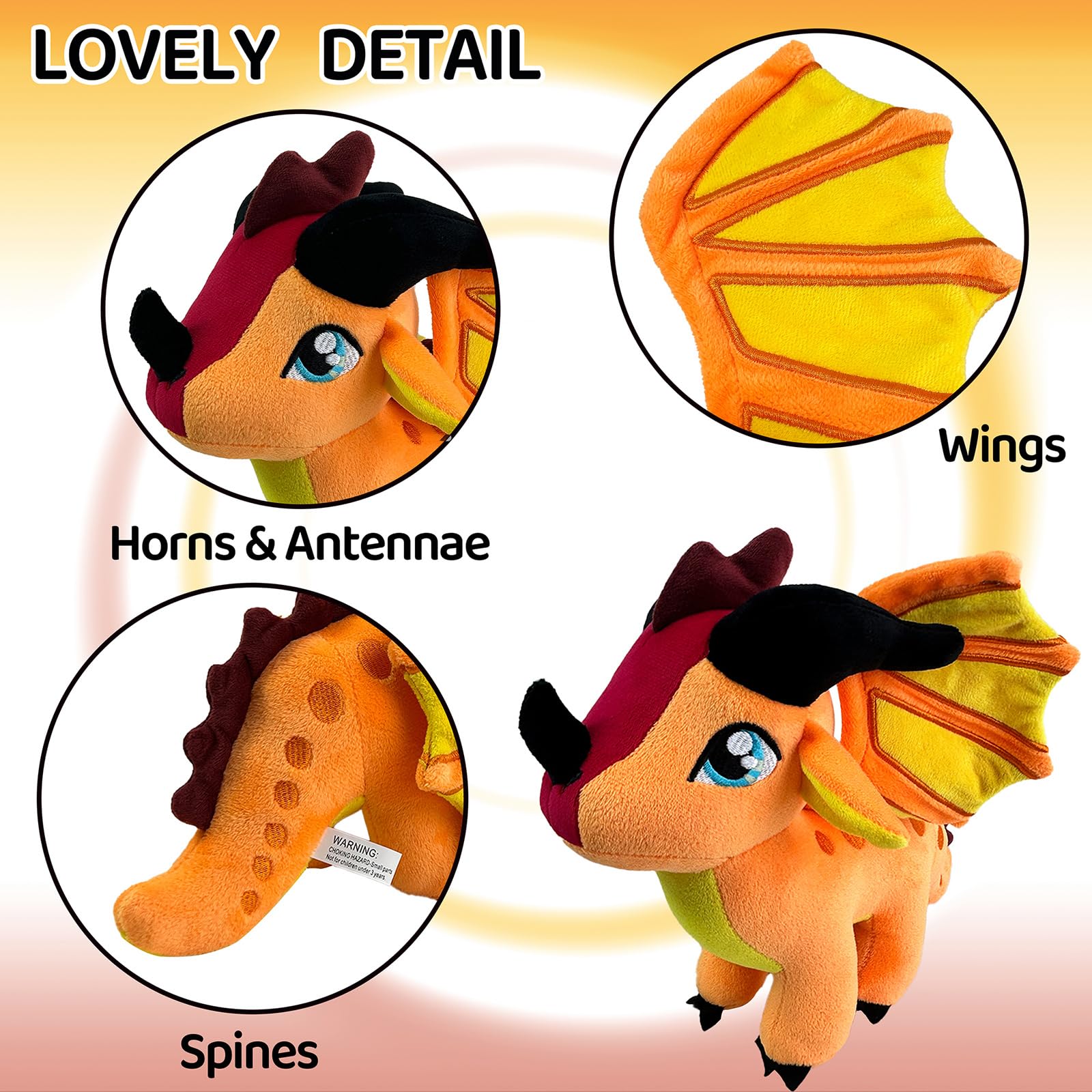 Kobataro Wings Dragon Plush Stuffed Animal Plushies Toys Cute Fire Dragon Stuffy For Kids Boys Girls For Aged 3+(Red)