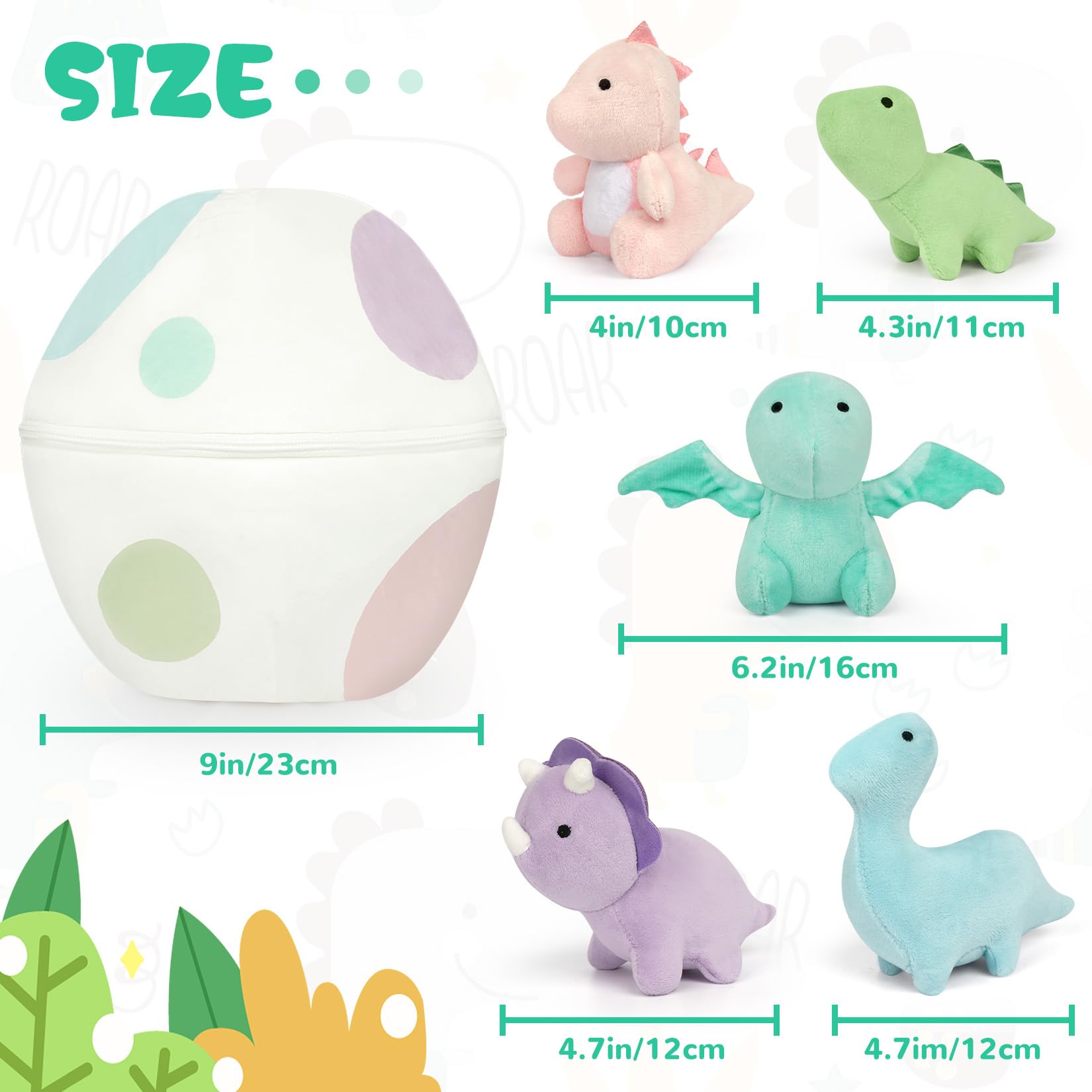 KOPHINYE Plush Dinosaur Stuffed Animals, 5 PCS Dino Plush Toys and Egg Bag Set, Cute Small Dinosaur Plushie Toy for Kids Toddler