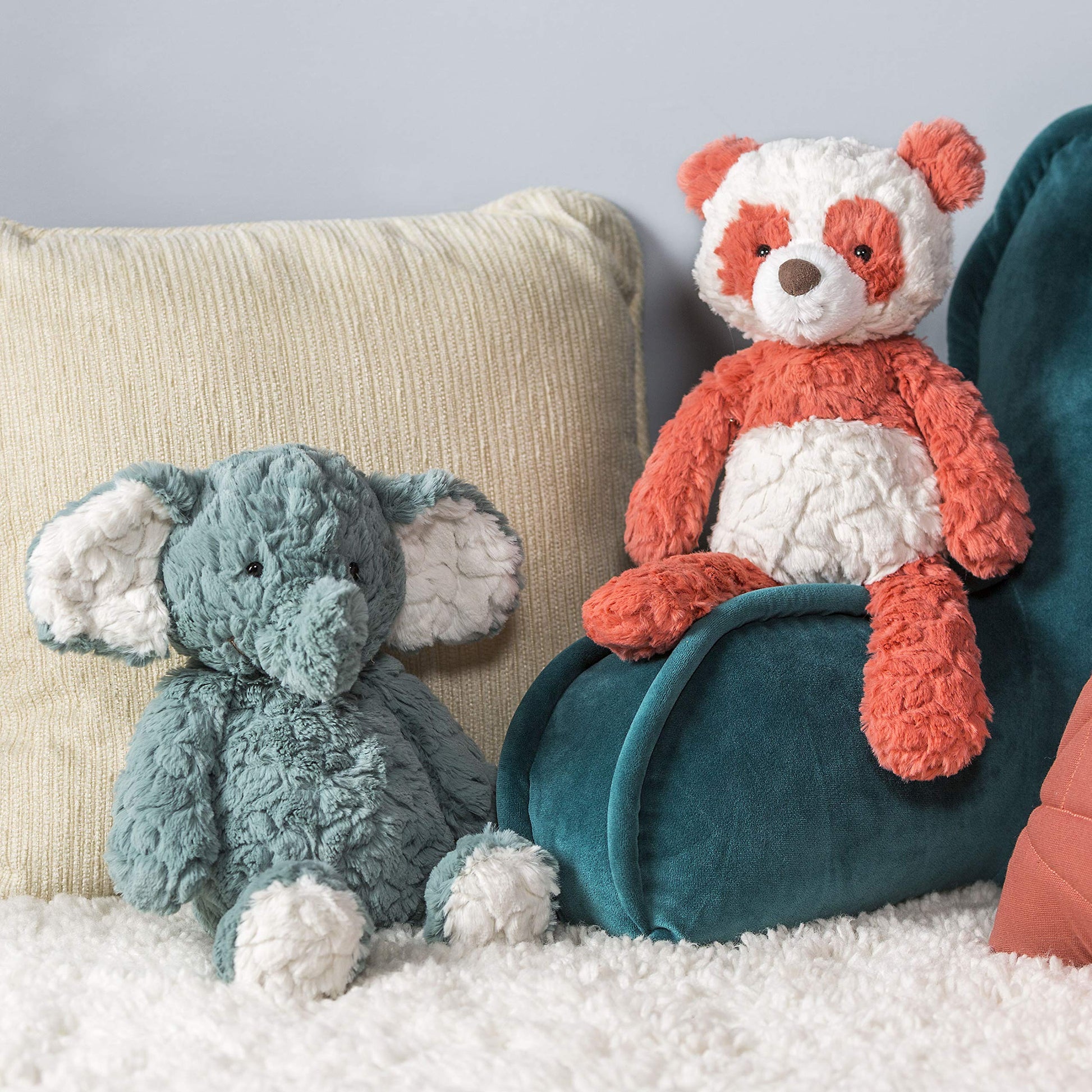 Putty Elephant is a super soft pal with etched fabric in slate blue and white. This big-eared buddy enjoys hanging out at playtime and loves snuggles during make-believe and storytime. Elephant measures 12-inches. Putty toys are designed with luxuriously soft fabrics that comfort with a touch and a squeeze, choose from a wide selection of friends from the Putty family. In 1933, Mary Meyer started sewing unique companions for her children and neighbors. To this day, here in the hills of Vermont, Mary's grandchildren and great-grandchildren continue that same tradition of building care and comfort into everything they create. Whether it's picking out the perfect gift for a loved one, receiving a toy friend that will become a best buddy, or cuddling up with and enjoying the luxurious, premium fabrics of our soft toys-when it comes to Mary Meyer, it's love you can feel.