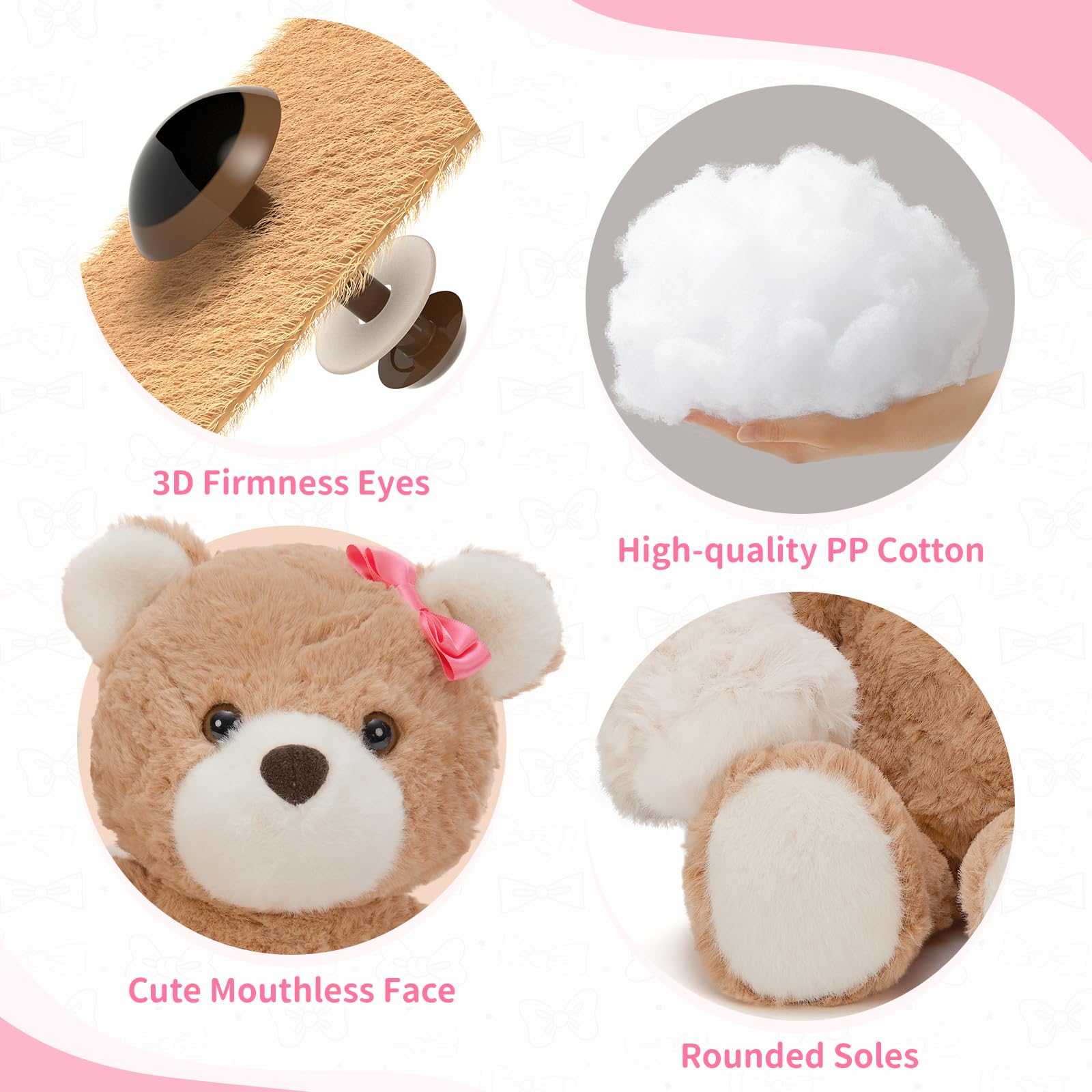 View compareMuiteiur 2 Packs Teddy Bears Bulk, 13.8 Inch Teddy Bear Set with Pink Rose & Bow - No Mouth, Soft Plush Stuffed Animals, for Kid