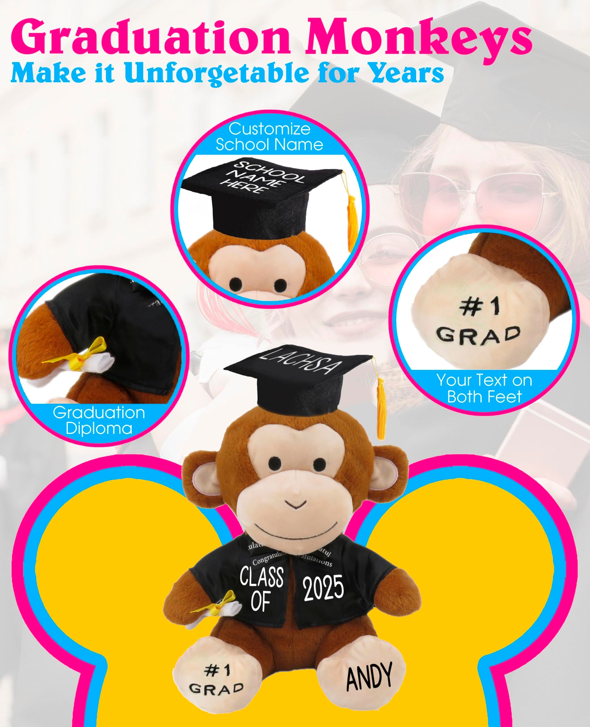 View comparePersonalized Graduation Teddy Bear Monkey Gift 2025 For Her, For Him, For High School, College, 12 Inch - Cute Custom Brown Monk